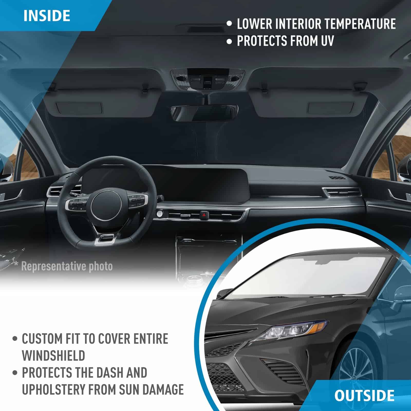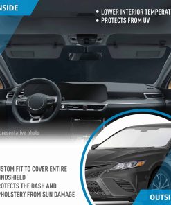 Esta cubierta para parabrisas es el accesorio perfecto para mantener tu vehículo fresco y protegido contra los daños causados por el sol. Su diseño plegable permite una configuración rápida y un almacenamiento compacto cuando no está en uso, lo que lo hace conveniente para llevarlo contigo a todas partes. Confeccionado con materiales de primera calidad, este protector solar para coche es duradero y confiable, asegurando una protección superior contra los rayos UV y el calor. Además, su ajuste personalizado lo hace perfecto para Toyota Camry 2018-2024 y otros vehículos, brindando una protección óptima para el interior de tu coche. No dejes pasar la oportunidad de disfrutar de los beneficios de este parasol de parabrisas de alta calidad.