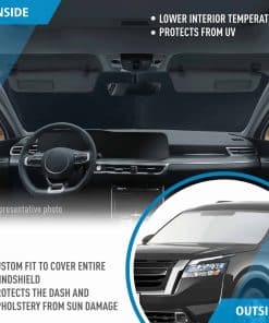 Este protector solar para parabrisas eficiente de CLIM ART es la solución ideal para mantener tu interior fresco y protegido de los dañinos rayos del sol. Refleja la luz solar de manera eficaz para reducir el calor y proteger tu tapicería, evitando decoloración, agrietamiento y daños causados por el sol. Su instalación es rápida y sencilla, desplegándose en cuestión de segundos y luego guardándose en un espacio mínimo para un almacenamiento compacto. Incluye una bolsa de transporte para un acceso fácil y conveniente. Este protector solar es un accesorio esencial para tu coche, protegiendo cuero, vinilo y plásticos de los dañinos rayos UV, evitando decoloración, agrietamiento y daños causados por el calor. Es perfecto para camionetas y SUVs, especialmente diseñado para adaptarse a Nissan Pathfinder 2022-2025 y otras configuraciones de accesorios para camionetas. Construido con materiales premium para una mayor durabilidad, este protector solar se destaca entre los demás en el mercado, brindando una protección superior contra los rayos UV y el calor.