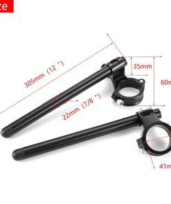 Detalles del objeto: Condición del objeto: Nuevo Material: aluminio 6061 T6 Acabado: superficies metálicas Adecuado para: Diámetro de horquilla de motocicleta 41MM Diámetro de la Abrazadera 41MM Altura de la Abrazadera: 60mm Inclinación 8 grados Longitud de las Barras: 30CM Diámetro de las Barras: 22 mm Diámetro interior del extremo de las Barras 17.5MM Color: se muestra como imagen El paquete incluye: 1 par de manillares