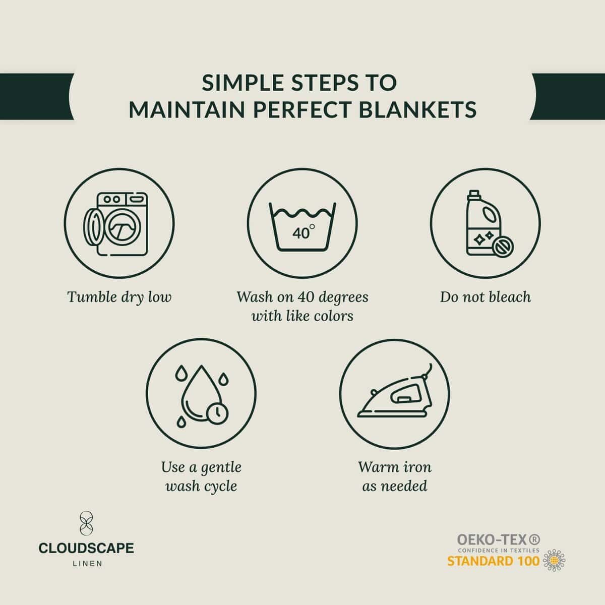 4. SUAVIDAD CON CADA LAVADO; MANTENIMIENTO MÍNIMO:- Trata tu manta con un esfuerzo mínimo. Es fácil de mantener, simplemente lavar a máquina y secar. Nuestras mantas se vuelven más suaves con cada ciclo. Lávalas por separado en agua fría con detergente suave, seca a baja temperatura y evita el blanqueador. Y sí, está hecho en un certificado estándar OEKO-TEX, se presenta en una bolsa de tela reutilizable, promete no solo lujo sino también un estilo de vida premium.