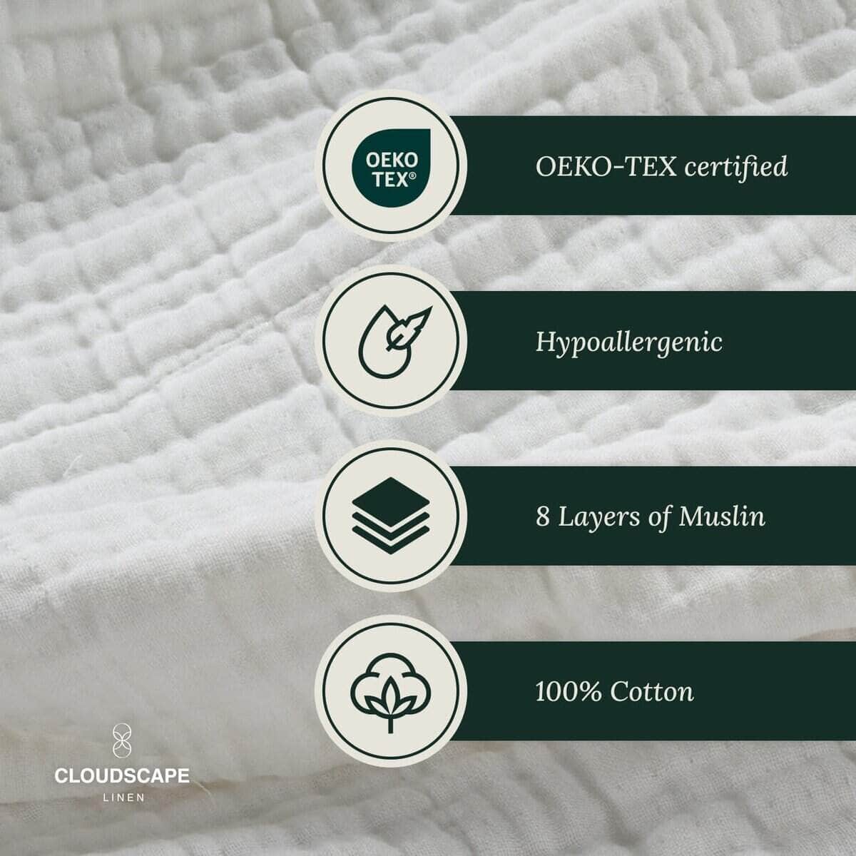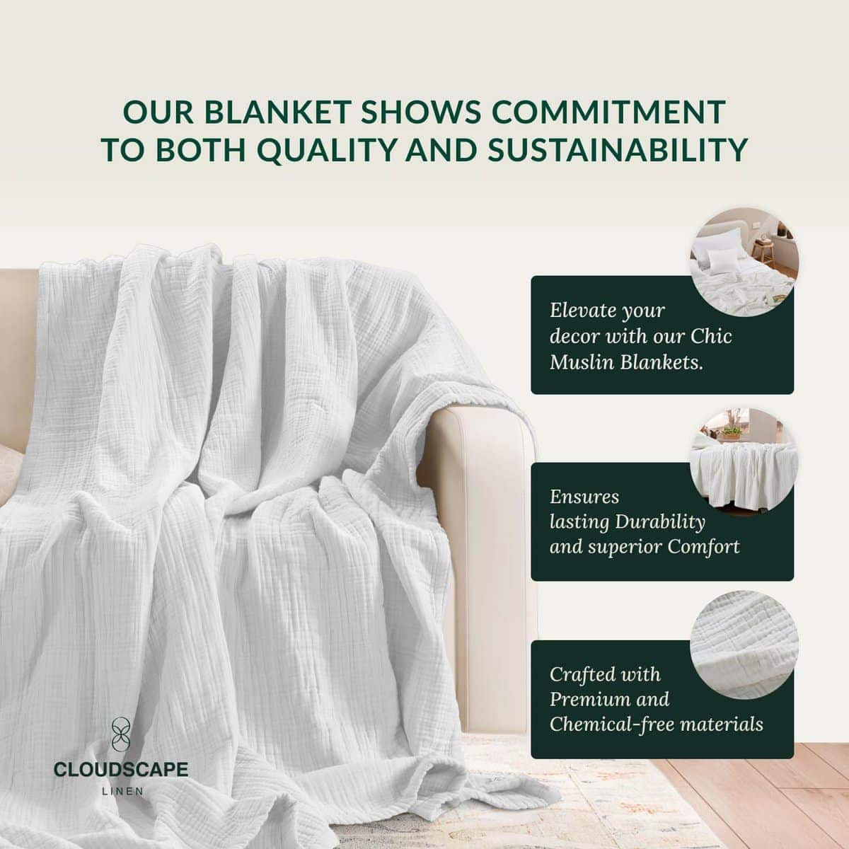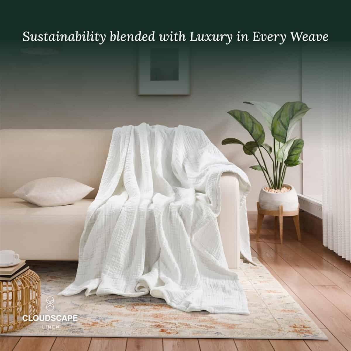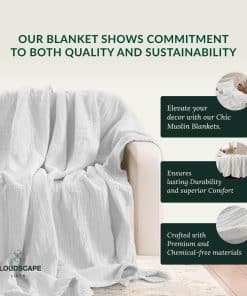 1. MANTA DE MUSLINA EXTRA GRANDE 50′ x 70′ PULGADAS BLANCA DE PREMIUM:- Actualiza tu comodidad con la mejor manta de muselina de 100% algodón de Cloud Scape Linen de 8 capas, una nueva y única adición al mercado! Disfruta de la sensación lujosa de la manta de muselina de 8 capas, envolviéndote en un abrazo acogedor y parecido a una nube. Perfectamente dimensionada para una cama queen de 50′ x 70′ con un peso de 2.86 libras (1.29 kg), esta manta de muselina es el último en comodidad y estilo.