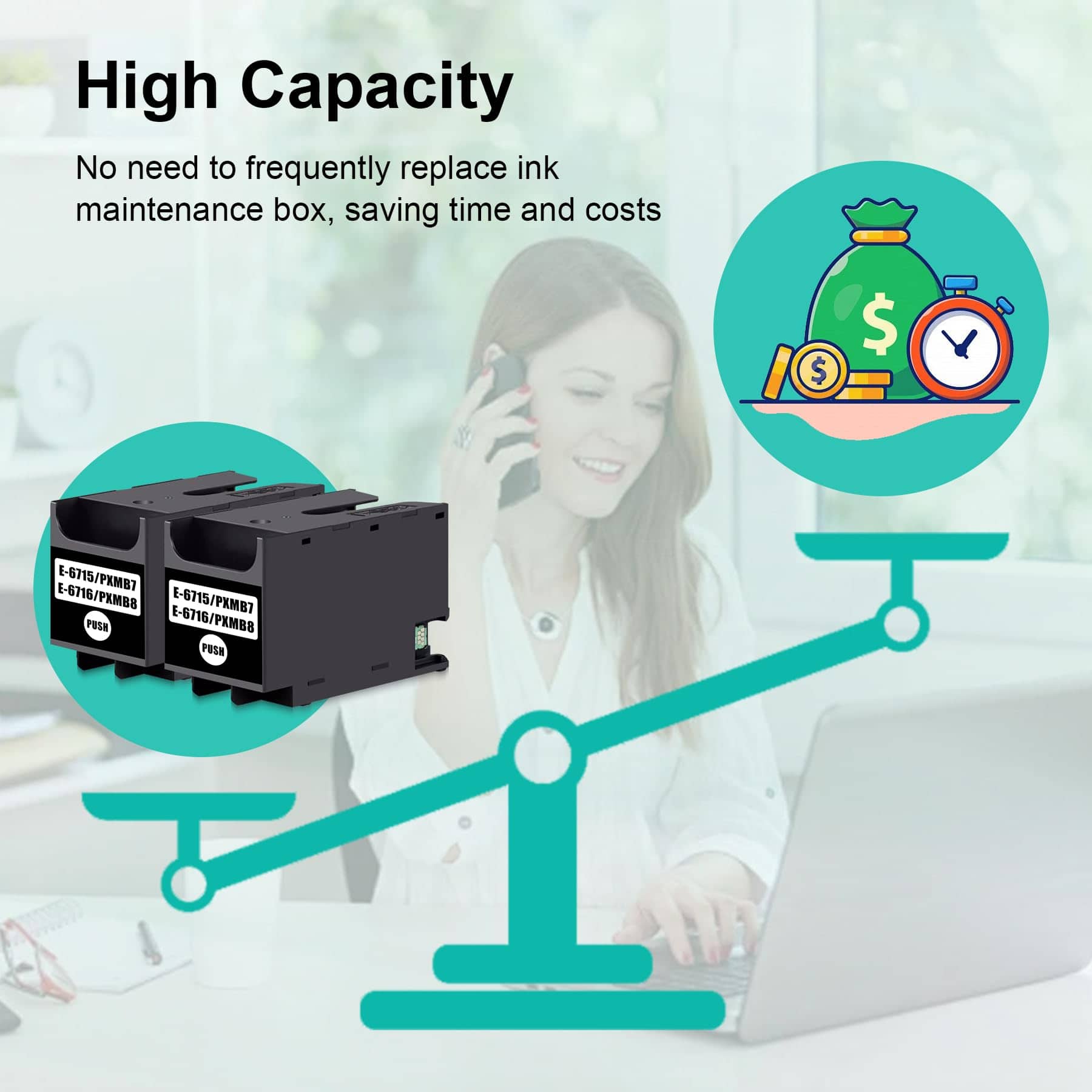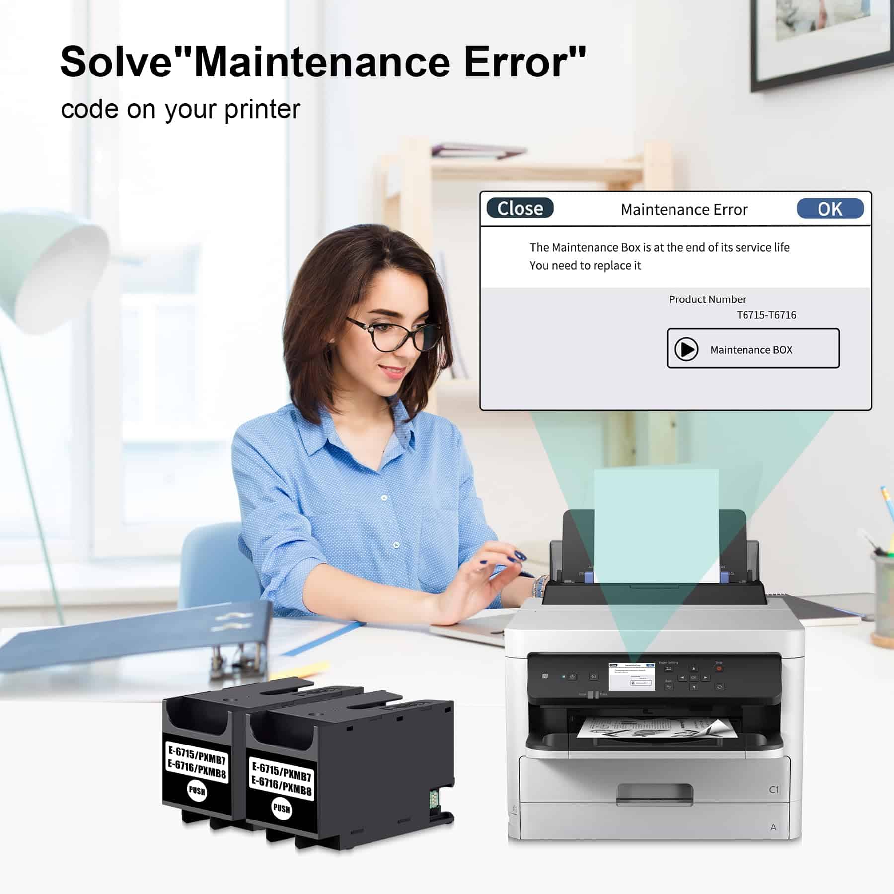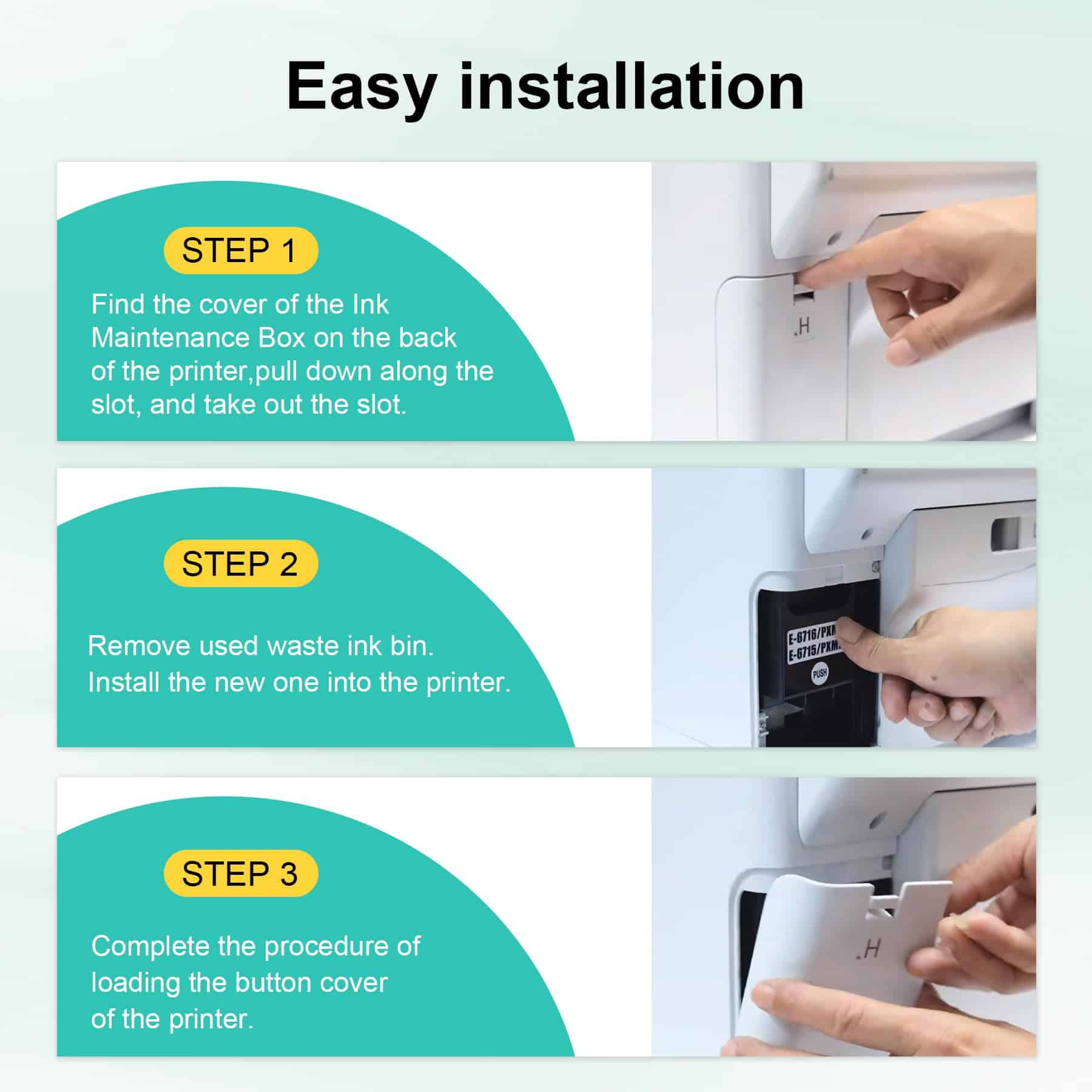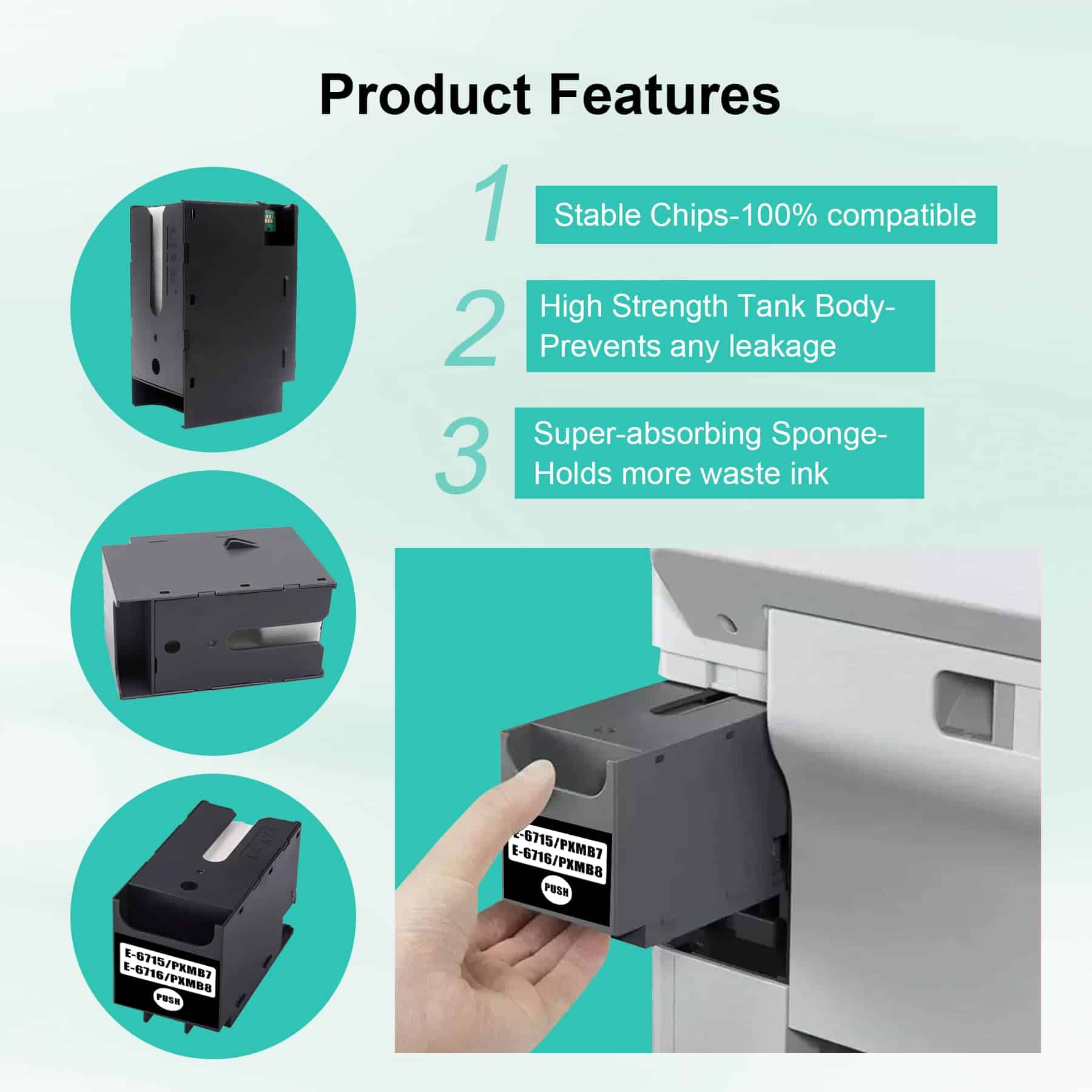 4. Ventajas: Caja de Mantenimiento de Tinta T6715 T6716 Empaque independiente, instalación rápida y sencilla, uso seguro y confiable para proteger la impresora.