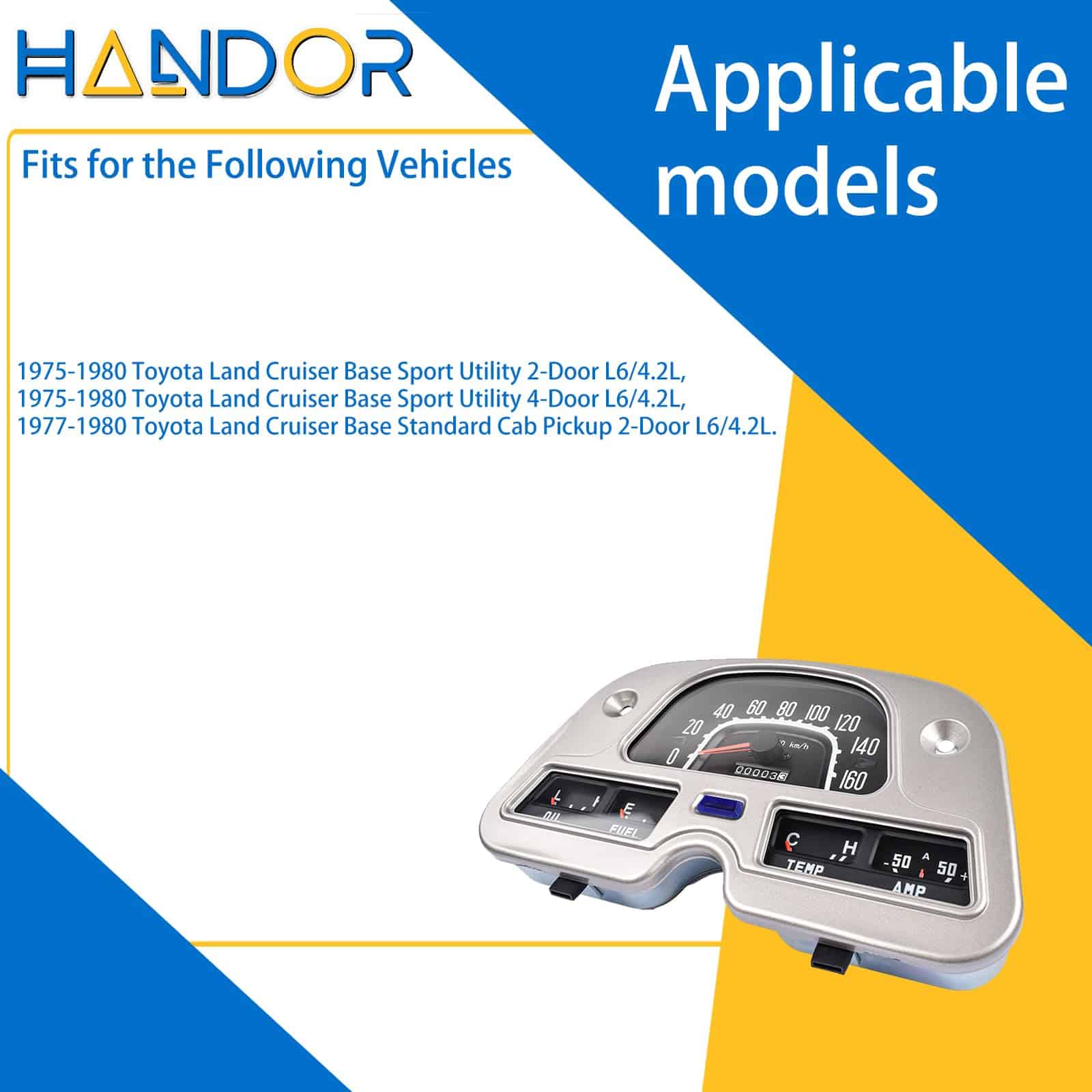Cluster de velocímetro Handor 83100-60180 compatible con 1975-1980 Land Cruiser FJ40 FJ43 FJ45 BJ40 BJ42 BJ43 BJ45 BJ46 HJ47. Nuestros productos pasan por pruebas rigurosas para garantizar su durabilidad y confiabilidad, y nos enorgullecemos de ofrecer un servicio al cliente excepcional. Número de pieza OE 83100-60180. Modelos aplicables: Compatible con Land Cruiser Base Sport Utility 2-Door L6/4.2L 1975-1980, Land Cruiser Base Sport Utility 4-Door L6/4.2L 1975-1980, Land Cruiser Base Standard Cab Pickup 2-Door L6/4.2L 1977-1980.