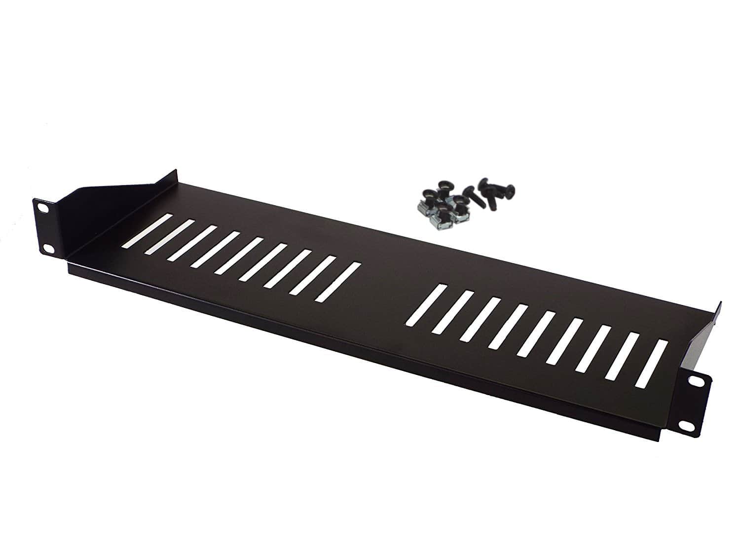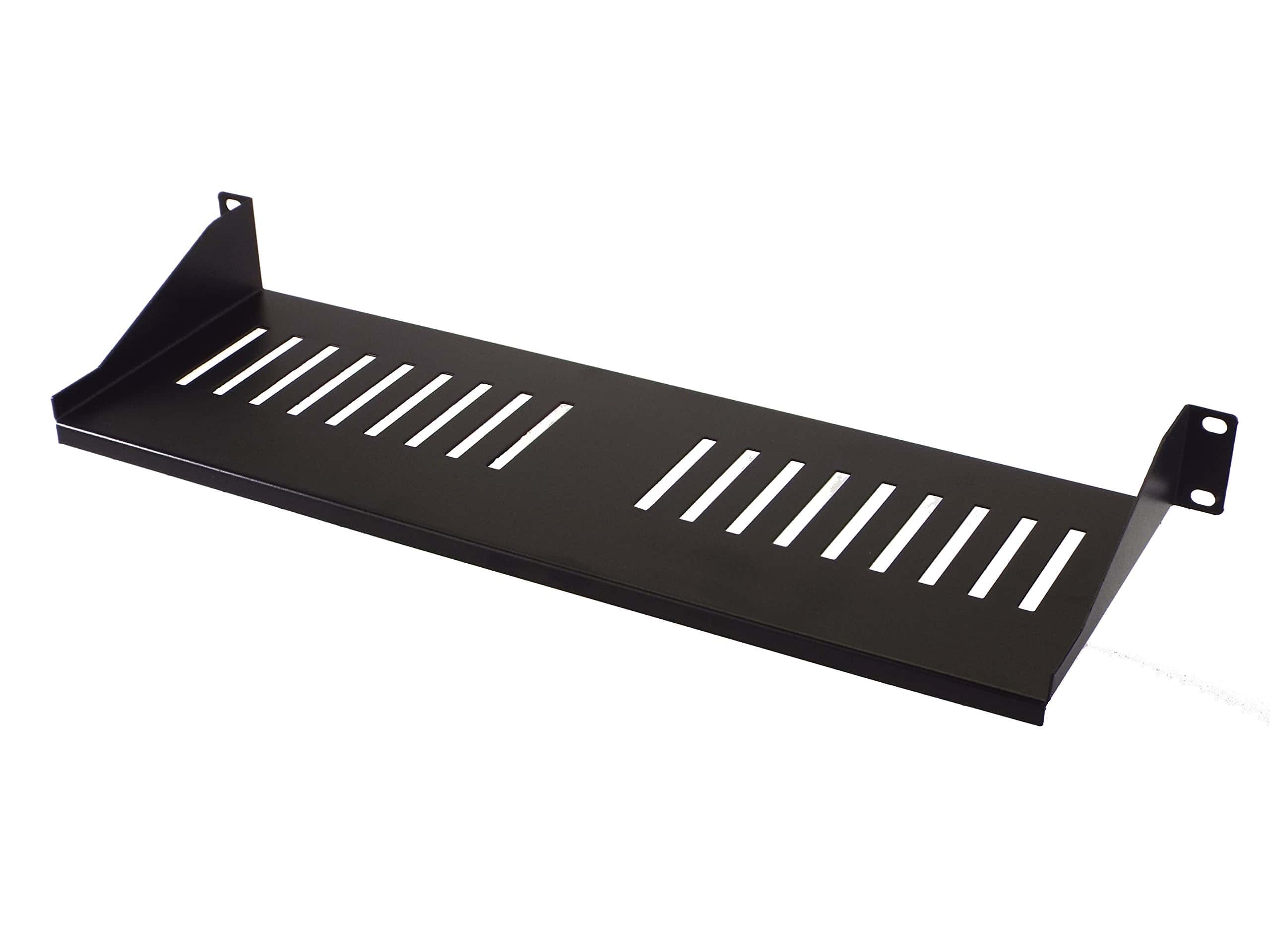 Estante de equipo de rack montado en rack de 1U con una profundidad de 6″ diseñado para anchos de montaje en rack de 19″. El diseño ligero y de una pieza permite un soporte fiable y uniformemente distribuido para dispositivos de redes, herramientas, documentos, piezas u otros objetos. Construido en acero y acabado en un duradero recubrimiento en polvo electrostático negro.