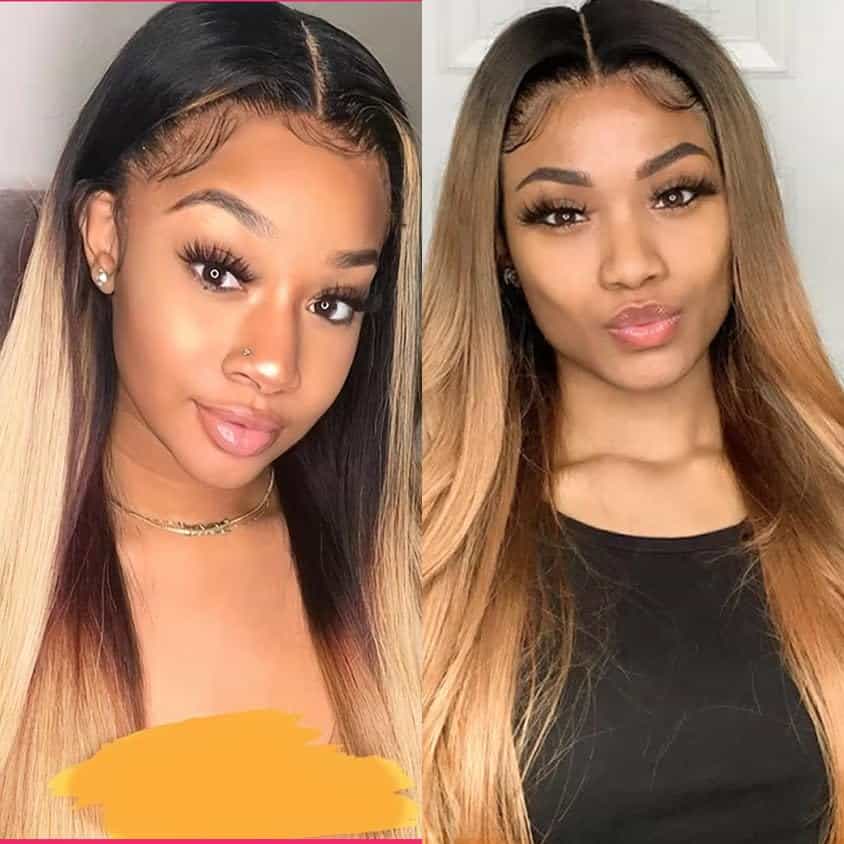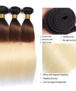 2. Colores de Mechones Rectos Ombre: Mechones T1B/4/613, Mechones de Tres Tonos Ombre, Mechones de Cabello Marrón y Rubio Miel.