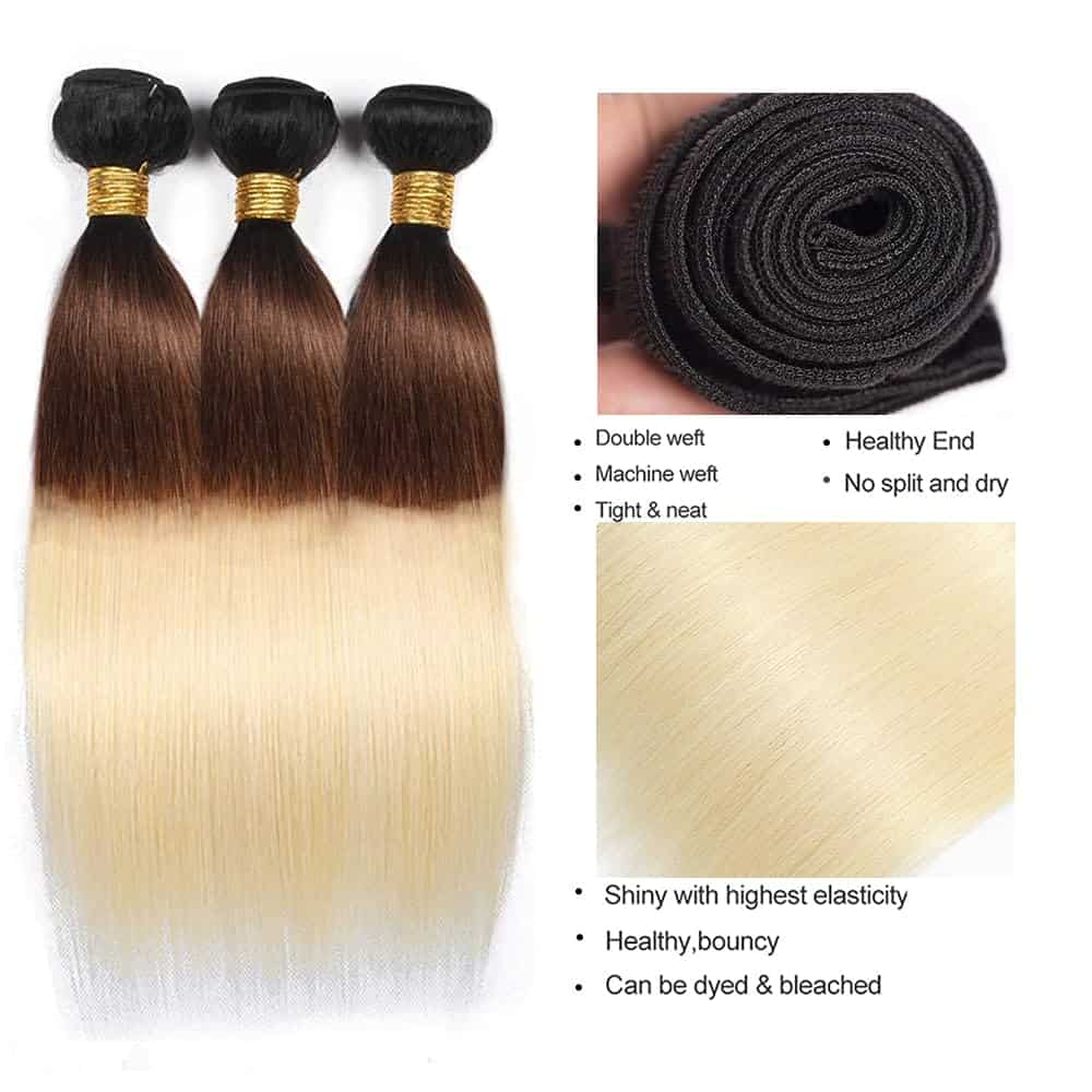 1. T1B/4/613 Mechones Material de Cabello: Mechones de Cabello Humano Virgen Remy Brasileño 8A sin Procesar. Suave, Suave y Fácil de Manejar.