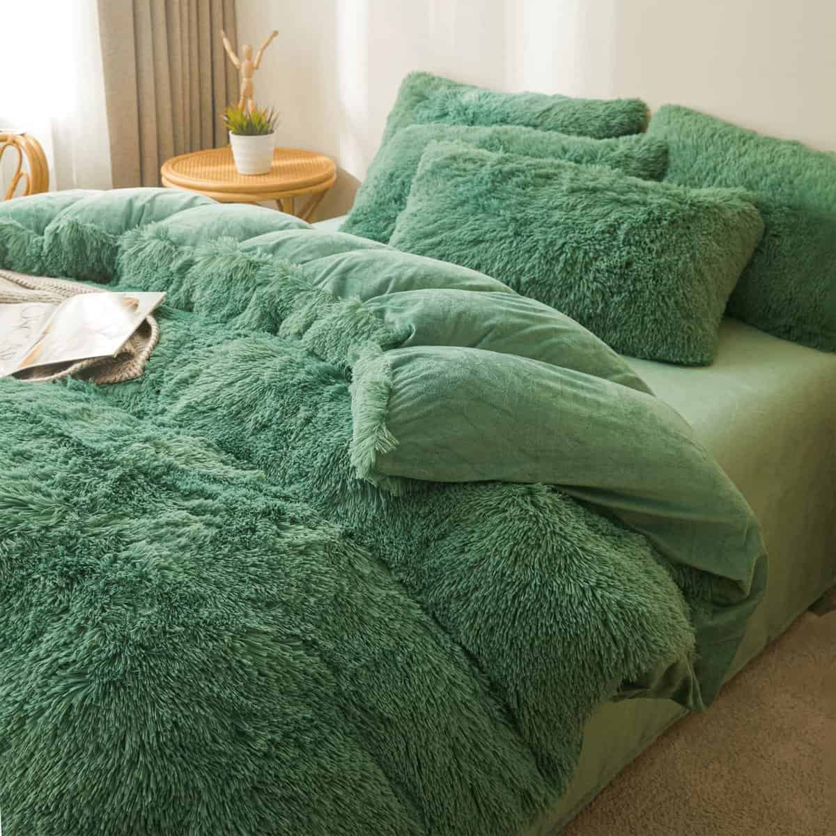 2. Juegos de Cama para Niñas: Los edredones verdes peludos individuales tienen estilo con un aspecto encantador en la cama, la ropa de cama verde más suave y peluda con divertido diseño. Presenta un lujoso pelaje de piel sintética para crear un espacio mullido y acogedor, el reverso está forrado con un terciopelo cristalino sólido, colores sólidos clásicos que combinan con muchos estilos de decoración. Es muy suave y cómodo, te hace querer quedarte en la cama todo el día.