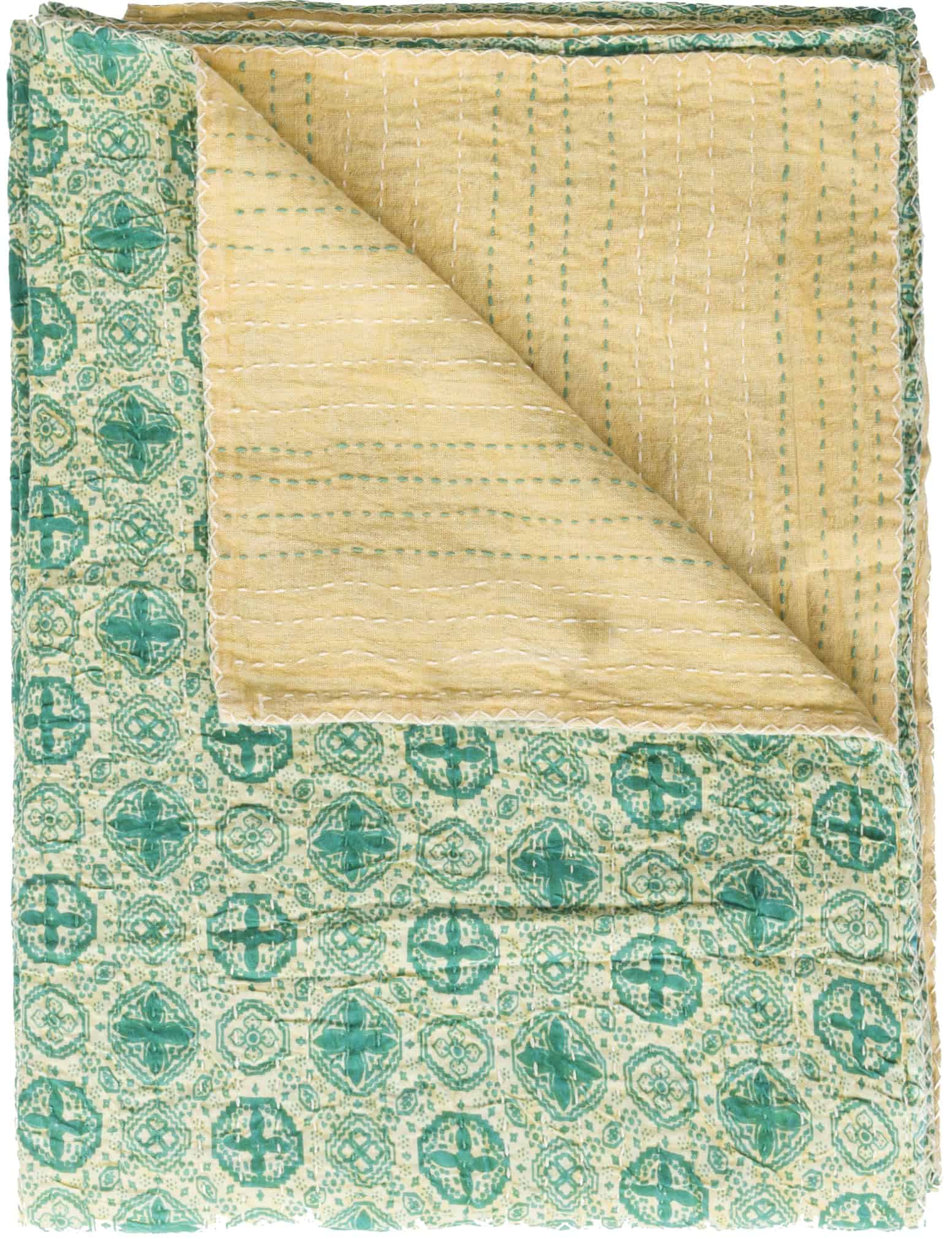 Cobertor de Acolchado Kantha 100% Algodón Hecho a Mano del