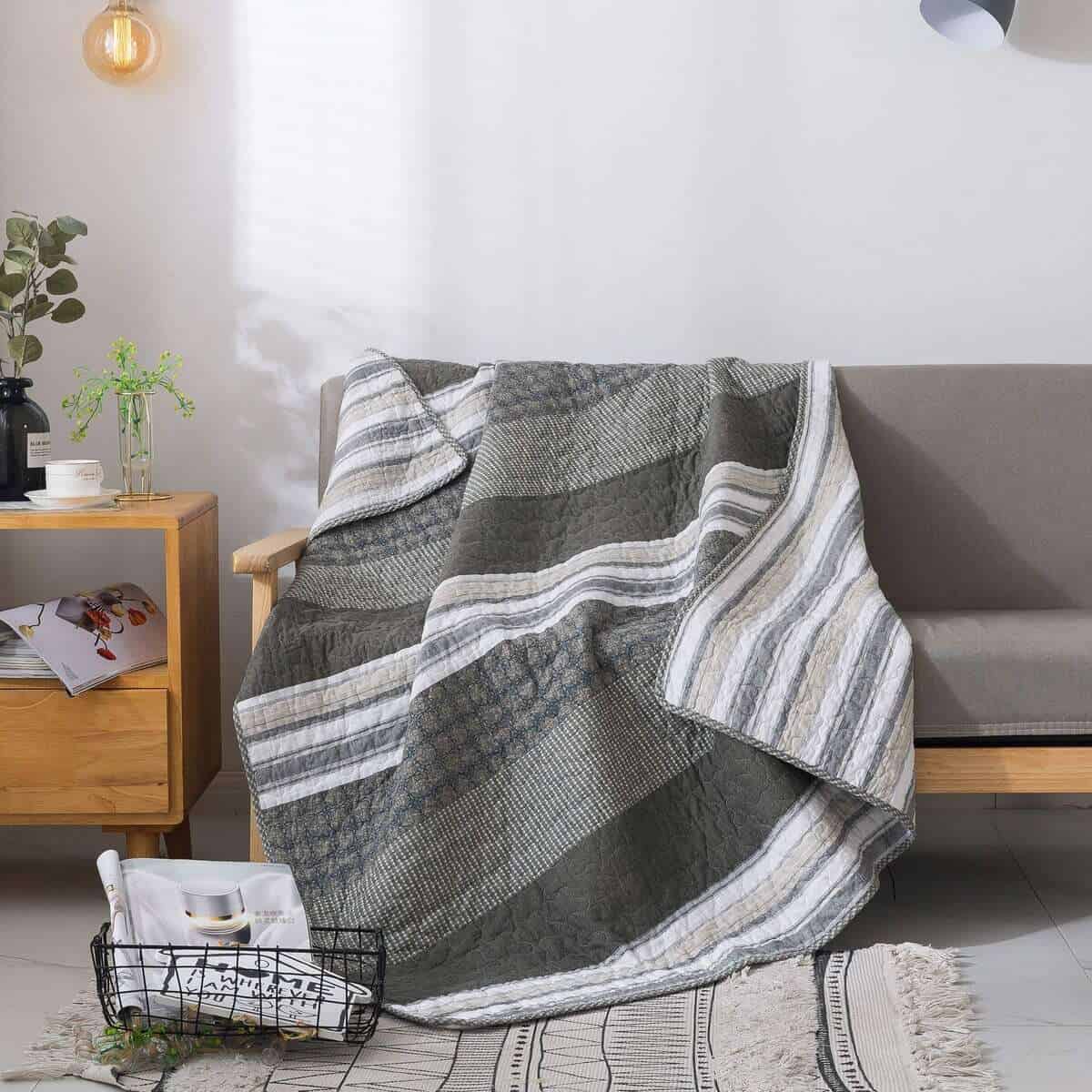 Acepta la masculinidad moderna de la manta de algodón acolchada Madrona, diseñada con un llamativo patrón de rayas en gris y blanco. Perfecta para agregar un toque de sofisticación a cualquier dormitorio, esta manta combina el atractivo atemporal del patchwork tradicional con un toque contemporáneo. Ideal para cualquier hogar, este edredón sirve como una pieza elegante y versátil para toda la familia o como un regalo considerado para una inauguración de casa o compromiso.