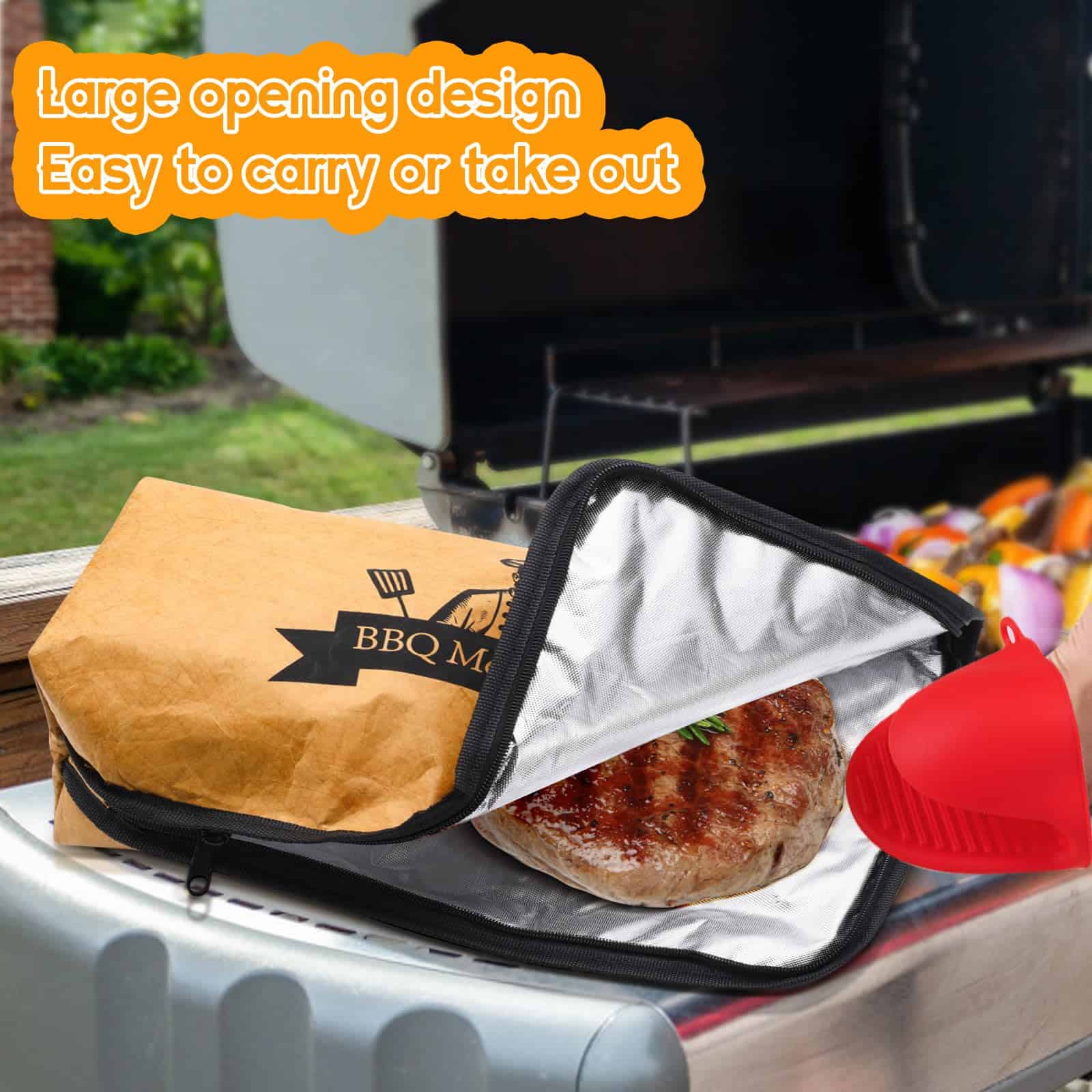 El diseño de doble cremallera y boca ancha mantiene el pavo, brisket de carne de res y pierna de cerdo en un espacio cerrado.