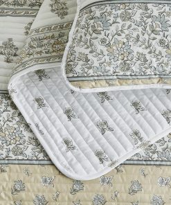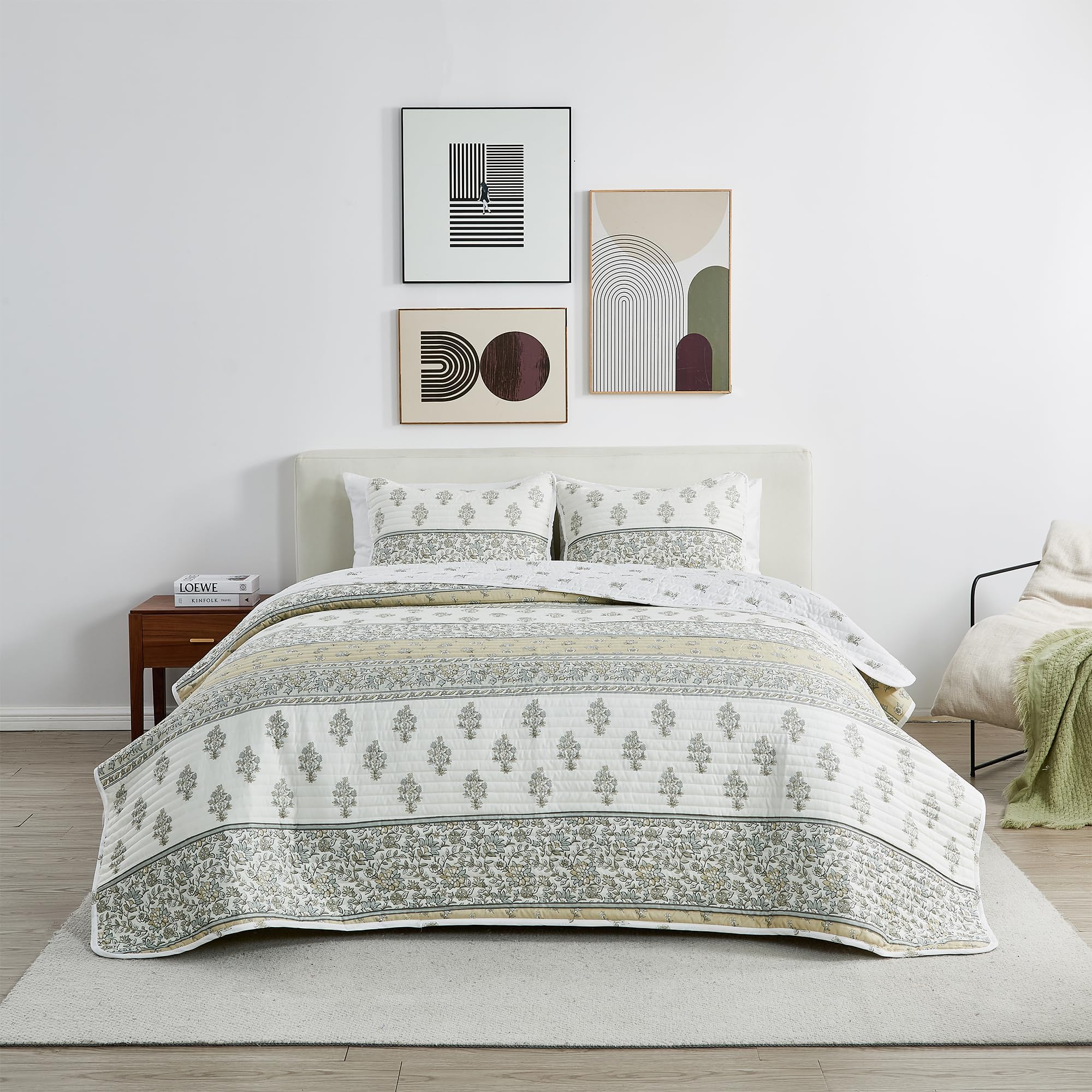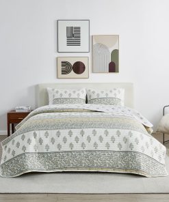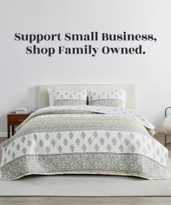 Este conjunto incluye 1 colcha queen que mide 90″ x 90″ y 2 fundas de almohada estándar que miden 26″ x 20″. La construcción de esta colcha es gruesa pero ligera, perfecta para la primavera y el verano.