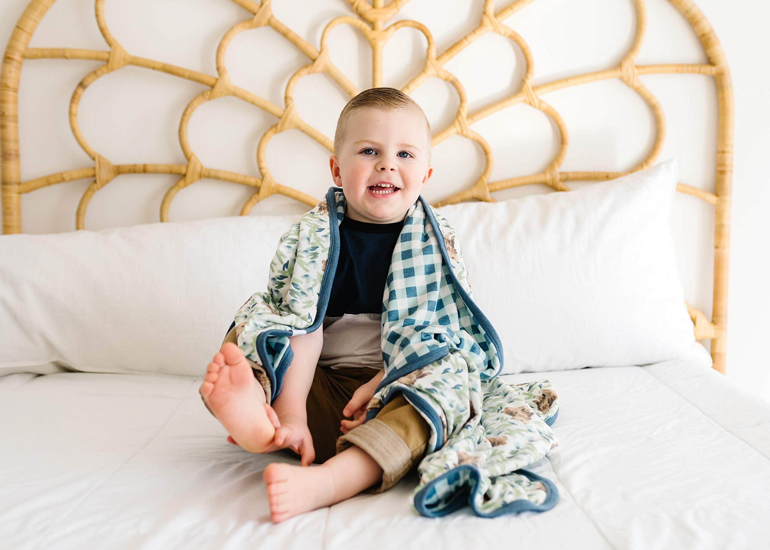 Esta manta ligera, elástica y moderna de punto está hecha de la tela premium más suave y proporciona las mantas perfectas para envolver a tu pequeño. Las mantas son ideales para el swaddling, como mantas de recepción multiuso y como tapetes de juego, para cuando tu hijo se gradúa al tiempo boca abajo, a sentarse de forma independiente y más allá. Debido al tamaño generoso de las mantas, tu bebé seguramente seguirá apreciándolas a lo largo de los años de la niñez; seguramente se convertirán en sus mantas de seguridad favoritas. Todos los bordes están remallados para garantizar alta calidad y durabilidad duradera. Con sus diseños modernos y de moda, este juego premium de mantas de swaddle para bebé es el regalo perfecto para las nuevas mamás: ¡uno que durará años a medida que el bebé crece!