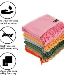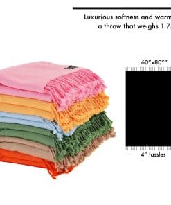 Experimenta la inigualable suavidad y calidez de este suave cobertor, elaborado con la mejor cachemira de 4 capas al 100%. Mide 60″ x 80″ y pesa aproximadamente 1.75 libras, con flecos de 4 pulgadas en ambos extremos para agregar un toque elegante. Perfecto para añadir un toque de lujo a tu rutina de relajación, transforma cualquier espacio en un refugio de confort.