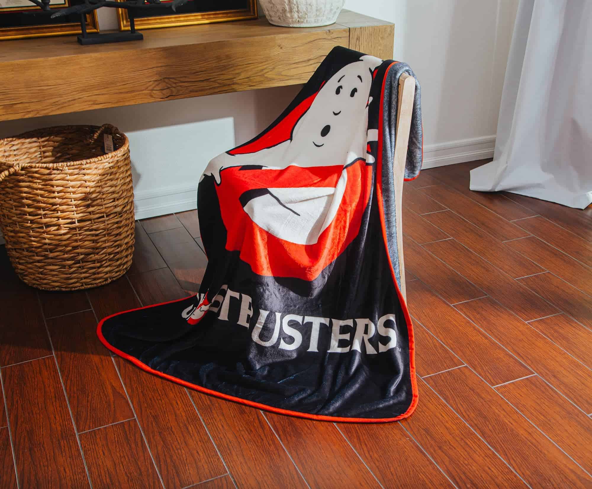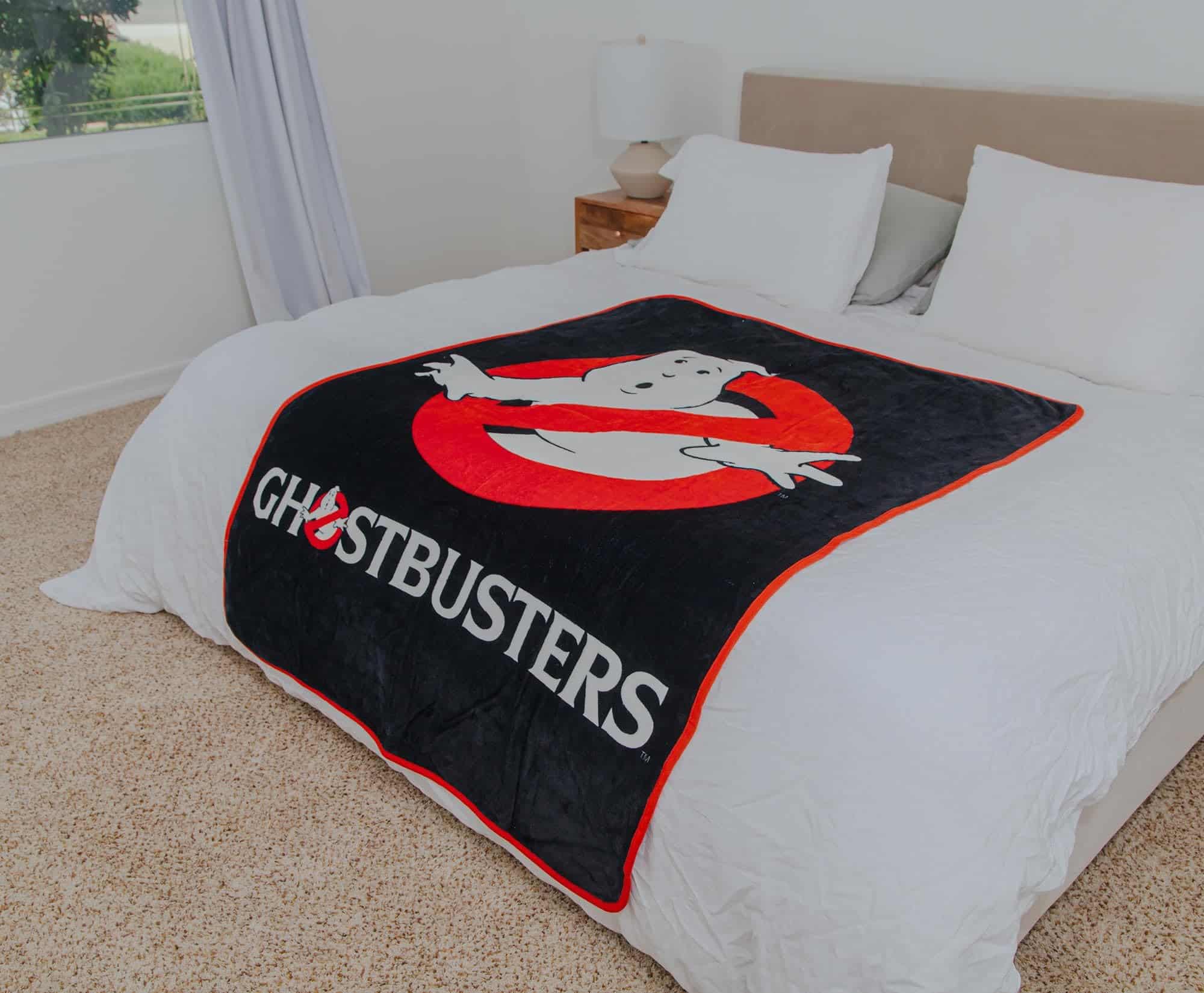 3. ABRIGOS SOBRENATURALES: Envuélvete en el mundo de espíritus espeluznantes de Ghostbusters con el audaz diseño de este cobertor. Los fanáticos reconocerán el icónico logo de la película en la manta, creada para brindar confort en tu hora de necesidad fría.