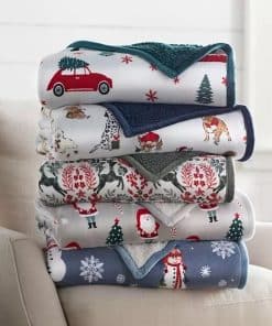 1. Cobertores de temporada para regalar o para ti mismo. 2. Vellón súper suave que se invierte a sherpa. 3. El cobertor se entregará bellamente empaquetado con un lazo de 2 pulgadas. 4. Sensación ultra suave. 5. Tamaño grande: 60″ x 70″. 6. Lavable a máquina para un fácil cuidado. 7. 100% Poliéster.