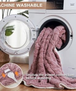 5. Lavable en Lavadora: Mantener tu cobertor eléctrico limpio es sencillo. Simplemente quita el controlador de calefacción y lava la cobija en agua fría en un ciclo suave. Después de lavar, estira suavemente la cobija calefactada para que recupere su tamaño original para un rendimiento óptimo. Disfruta de la comodidad de una cobija cálida y fresca siempre que lo desees.