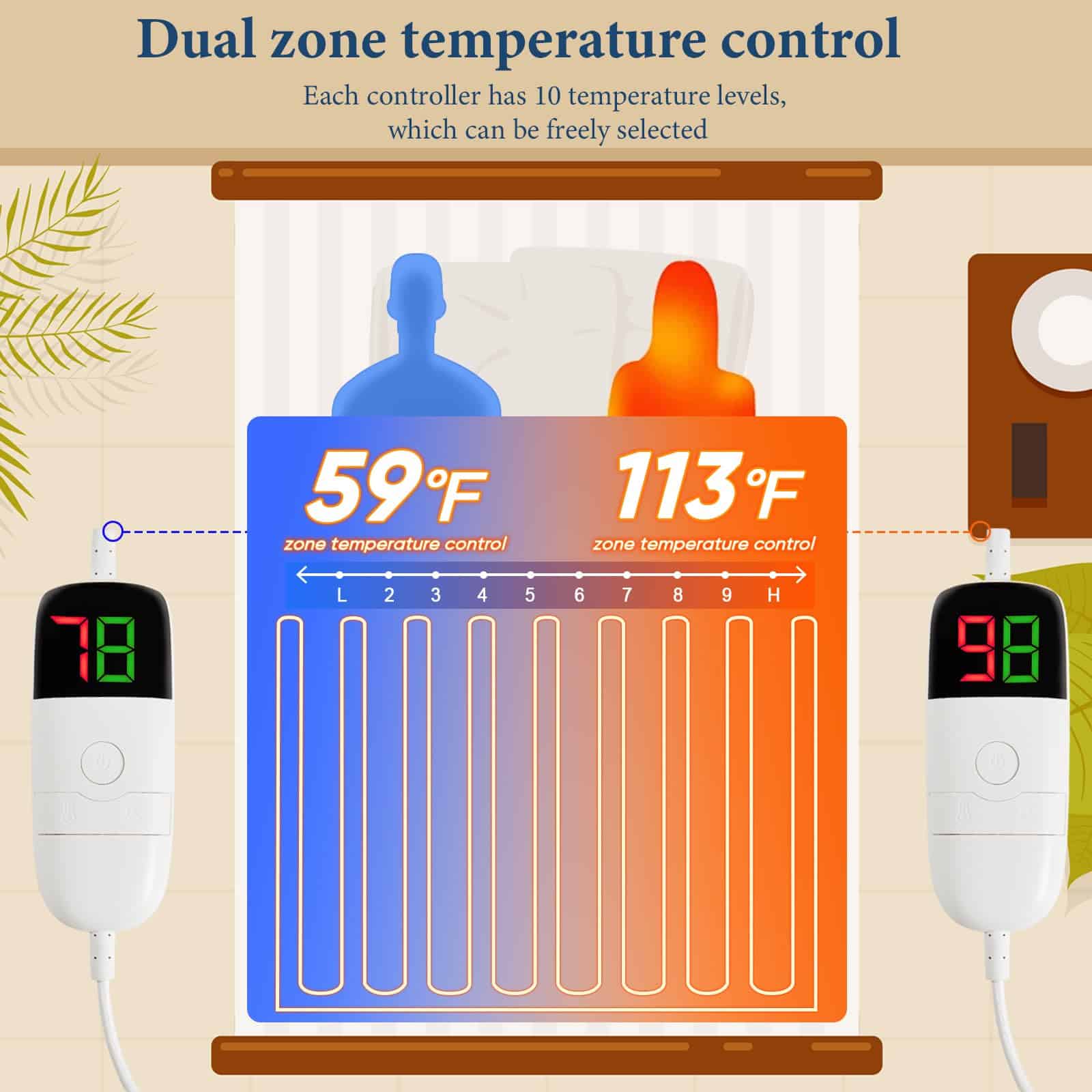 El cobertor eléctrico greenoak tamaño King es la solución perfecta para mantenerte caliente y acogedor durante los días fríos de invierno. Con certificación de autoridad ETL y certificación FCC, esta manta calefactora es segura y confiable, con funciones de protección contra sobrecalentamiento para brindarte tranquilidad mientras la usas. Con 10 niveles de calor y 5 ajustes de tiempo, puedes personalizar la temperatura y el tiempo de uso para adaptarse a tus necesidades específicas.