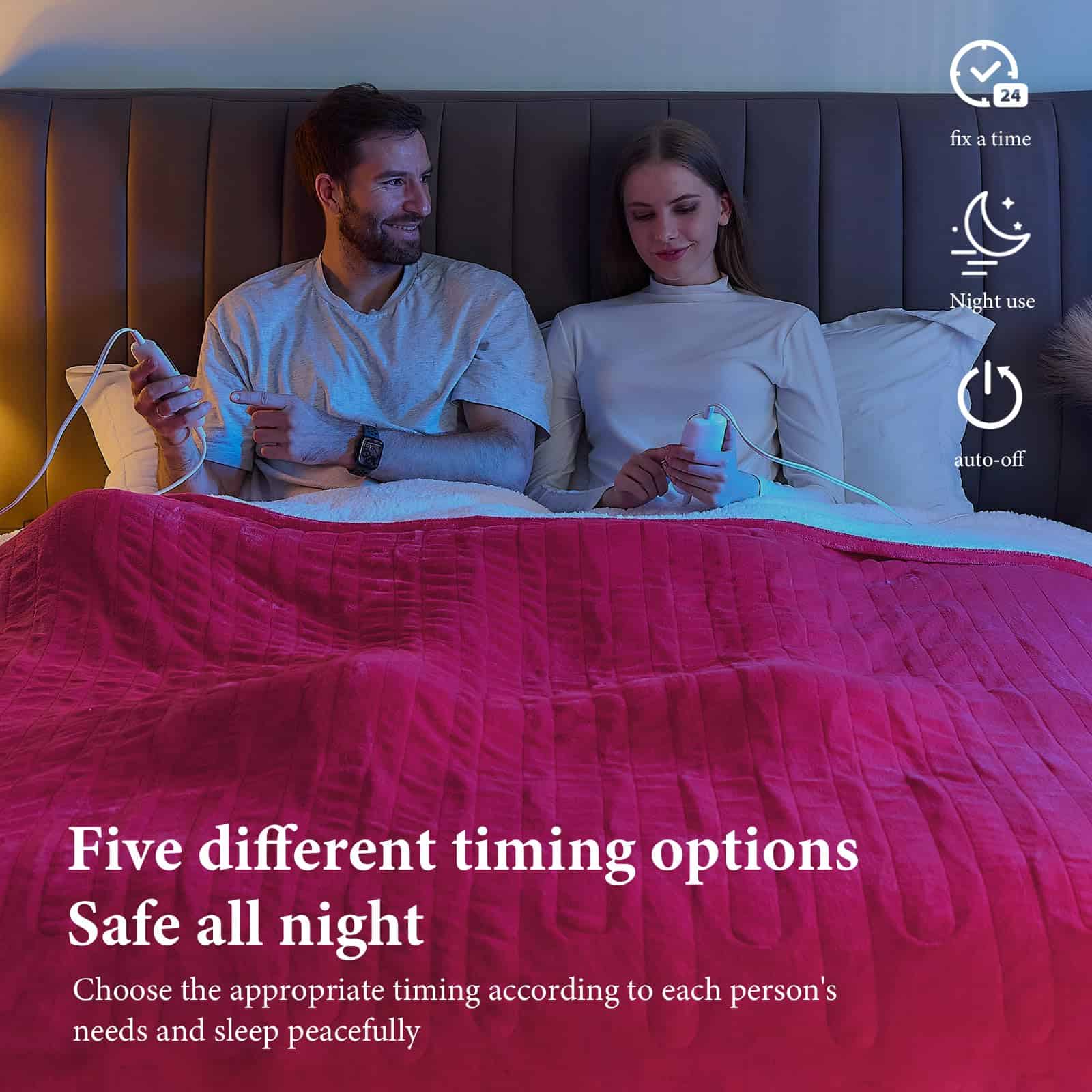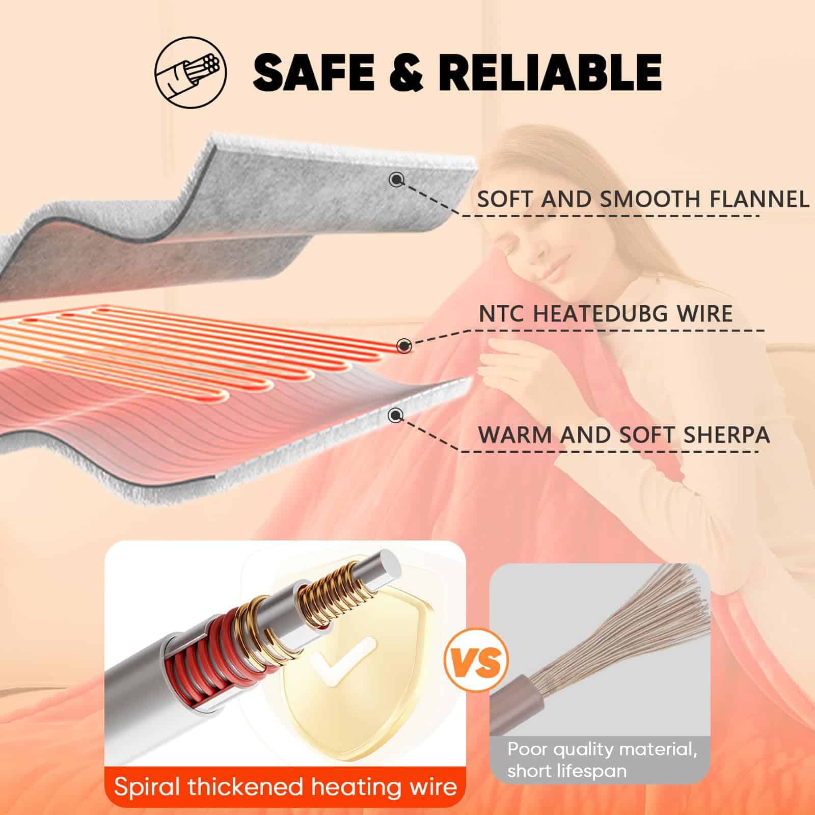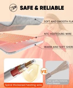Fabricada con sherpa suave y acogedora, esta manta térmica es ideal para usar en dormitorios, salas de estar, salas de cine en casa y más. Con opciones de lavado a mano y lavado a máquina, es fácil de mantener limpia y fresca durante toda la temporada de invierno. No te preocupes por apagar la manta mientras duermes o te olvidas cambiar el tiempo de calentamiento, ya que la protección contra sobrecalentamiento se activará automáticamente para garantizar tu seguridad y la de tu familia.