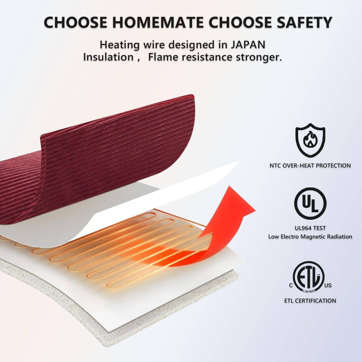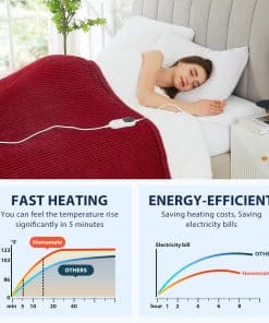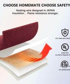 Cobertor eléctrico Homemate ha pasado la prueba de seguridad UL964 de Estados Unidos. Certificación ETL. Baja Radiación Electromagnética. Además, el cobertor eléctrico utiliza tecnología de protección contra sobrecalentamiento NTC para garantizar que no se sobrecaliente ni cause quemaduras. Ideal para personas mayores, mujeres embarazadas, mascotas, muy seguro y portátil. El cobertor eléctrico Homemate utiliza tecnología de ajuste de temperatura inteligente. El cobertor eléctrico ajustará automáticamente la temperatura según el entorno circundante, lo que siempre puede proporcionar calor y comodidad al usuario. En comparación con el aire acondicionado, utilizar un cobertor eléctrico Homemate es más eficiente en energía y respetuoso con el medio ambiente, lo que le ahorrará más dinero en costos de calefacción durante los largos meses de invierno.