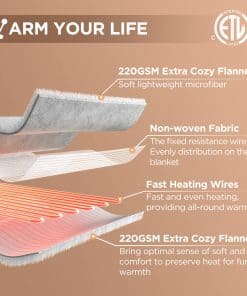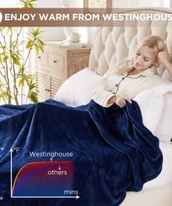 Cobertor Eléctrico Westinghouse Tamaño Completo, Manta Calefactora Eléctrica con 10 Niveles de Calor, Apagado Automático de 1-12 Horas, Rápido Calentamiento, Lavable a Máquina (Completo, 72×84 Pulgadas, Azul Marino). El cobertor eléctrico de Westinghouse está hecho de franela de doble cara de 200GSM, que es súper suave, cómoda, amigable con la piel y transpirable, saludable y puede estar en contacto directo con la piel. La línea de calefacción interna está distribuida de manera uniforme para evitar el sobrecalentamiento local, lo que le permite usarlo con tranquilidad. El cobertor calefactor de Westinghouse cuenta con protección contra sobrecalentamiento que puede garantizar su seguridad durante el uso normal. Certificado ETL y FCC para tamaño completo de cobertor calefactor con baja radiación electromagnética. Por favor, lea las instrucciones cuidadosamente antes de usarlo para evitar el sobrecalentamiento local causado por un uso incorrecto. El cobertor calefactor de Westinghouse admite calentamiento rápido de 20 minutos, ayuda a iniciar rápidamente el proceso de calentamiento, para que no tenga que esperar demasiado tiempo para acostarse debajo de una manta cálida. Apagado automático de 1 a 12 horas, protección contra sobrecalentamiento y otras funciones, que le permiten usarlo con más confianza. 10 ajustes de calor, la temperatura se puede ajustar libremente. La longitud del cable de alimentación es de 72 + 156 pulgadas. El cobertor eléctrico de Westinghouse en tamaño completo es adecuado para uso, ver televisión, leer libros, relajarse en casa en el sofá o sofá, durante el trabajo en la oficina, le brinda una experiencia de vida cálida y cómoda. Nuestro cobertor completo calefactor es apto para lavado a máquina, debe desconectar el cable de alimentación del controlador antes de limpiarlo, y ponerlo en la lavadora a 30 grados de temperatura del agua. NOTA: NO LIMPIE EN SECO. NO BLANQUEAR. NO PLANCHAR. NO CONECTE Y ENCENDA EL PRODUCTO CALEFACTOR CUANDO ESTÉ HÚMEDO. NO USE HASTA QUE ESTÉ COMPLETAMENTE SECO. El Cobertor Eléctrico de Calefacción de Westinghouse ofrece servicio post-venta, si tiene alguna pregunta o inquietud sobre el producto, por favor contacte a nuestro personal de servicio al cliente para obtener asistencia.