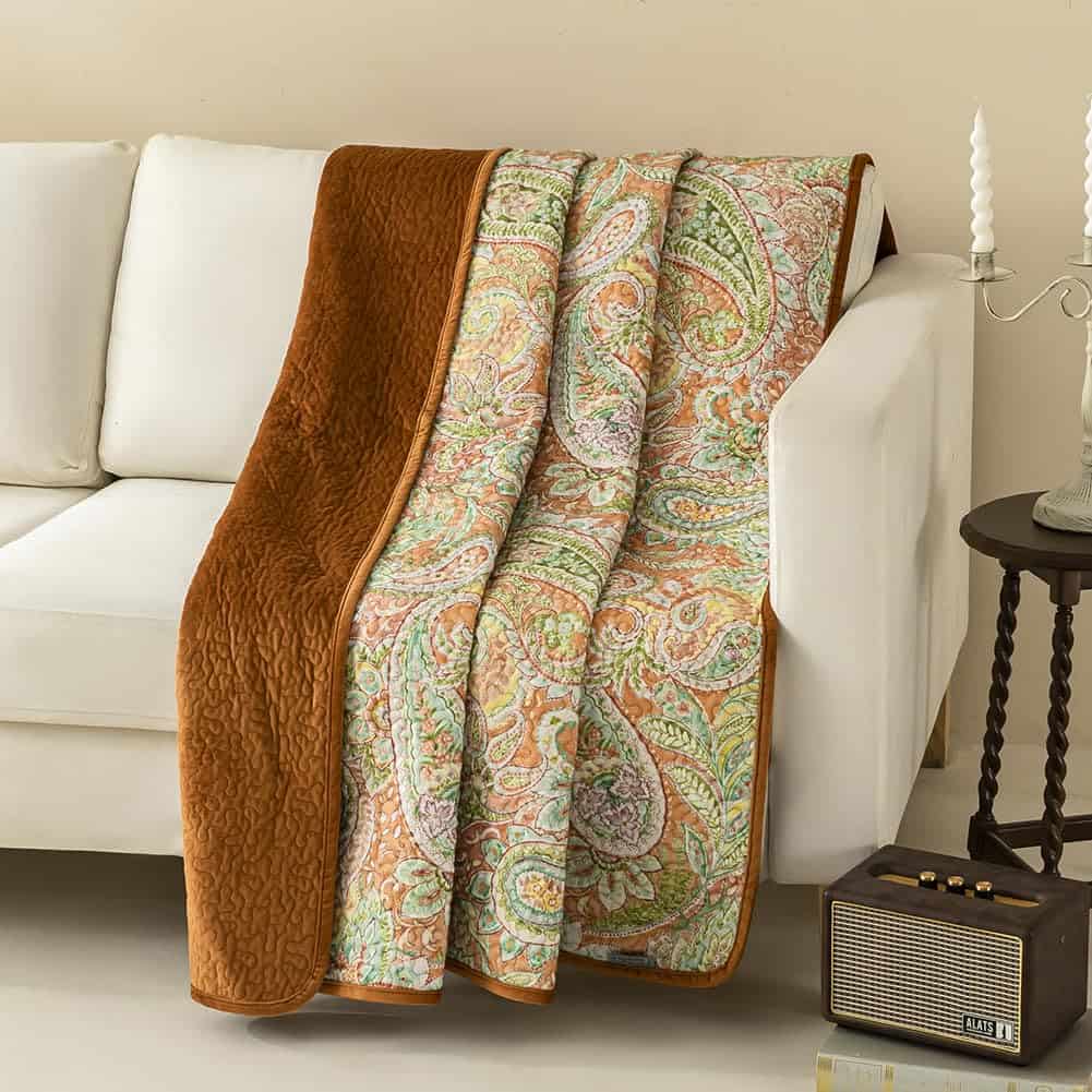 2. Patrón Perfecto: Diseño Paisley en el frente y color sólido a juego en la parte trasera, te dará una apariencia maravillosa y clásica cuando lo uses en la habitación o sala de estar.