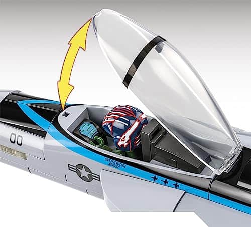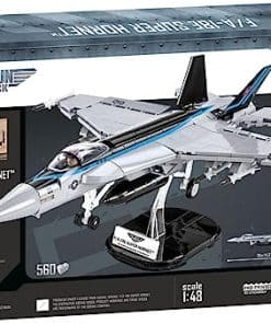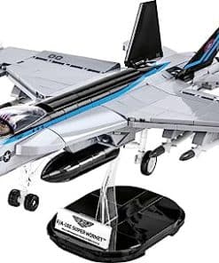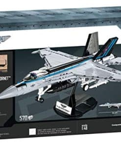 El F/A-18E Super Hornet es un modelo de bloques de construcción de la película lanzado bajo la licencia original de TOP GUN: Maverick. El legendario piloto instructor de la Marina de los Estados Unidos Pete ‘Maverick’ Mitchell vuela este avión con sus distintivos de identificación. En anticipación al estreno de la película, ahora puedes construir tu propio Super Hornet en una escala de modelo de 1:48. El modelo ha sido fielmente creado a partir de 570 bloques de construcción COBI. En el set encontrarás impresiones y calcomanías de alta calidad que reproducen con precisión la pintura original del avión de la película. El modelo está equipado con una cabina móvil y ruedas giratorias. Bajo las alas hay un gran arsenal de armamento. En la cabina puedes colocar al piloto especial de bloques. También incluye un elegante soporte de exhibición de bloques y una placa con el nombre del avión y el logotipo de la película. Este exclusivo kit con licencia es sin duda una excelente idea de regalo para constructores de todas las edades que son fanáticos de las películas, tanto de aviación como militares. Se ve perfecto en una oficina elegante o en el dormitorio de un adolescente. El Boeing F/A-18E Super Hornet fue un avión multirol de la Marina de los Estados Unidos encargado a finales de los años 90 como una versión agrandada y mejorada del F/A-18C/D Hornet. El Super Hornet reemplazó al avión de combate F-14 Tomcat utilizado por la Marina de los Estados Unidos hasta hace poco, así como a otros aviones especializados. Es uno de los aviones más modernos de la Marina de los Estados Unidos.