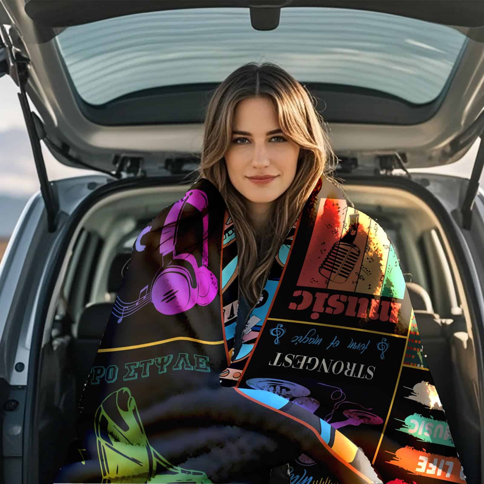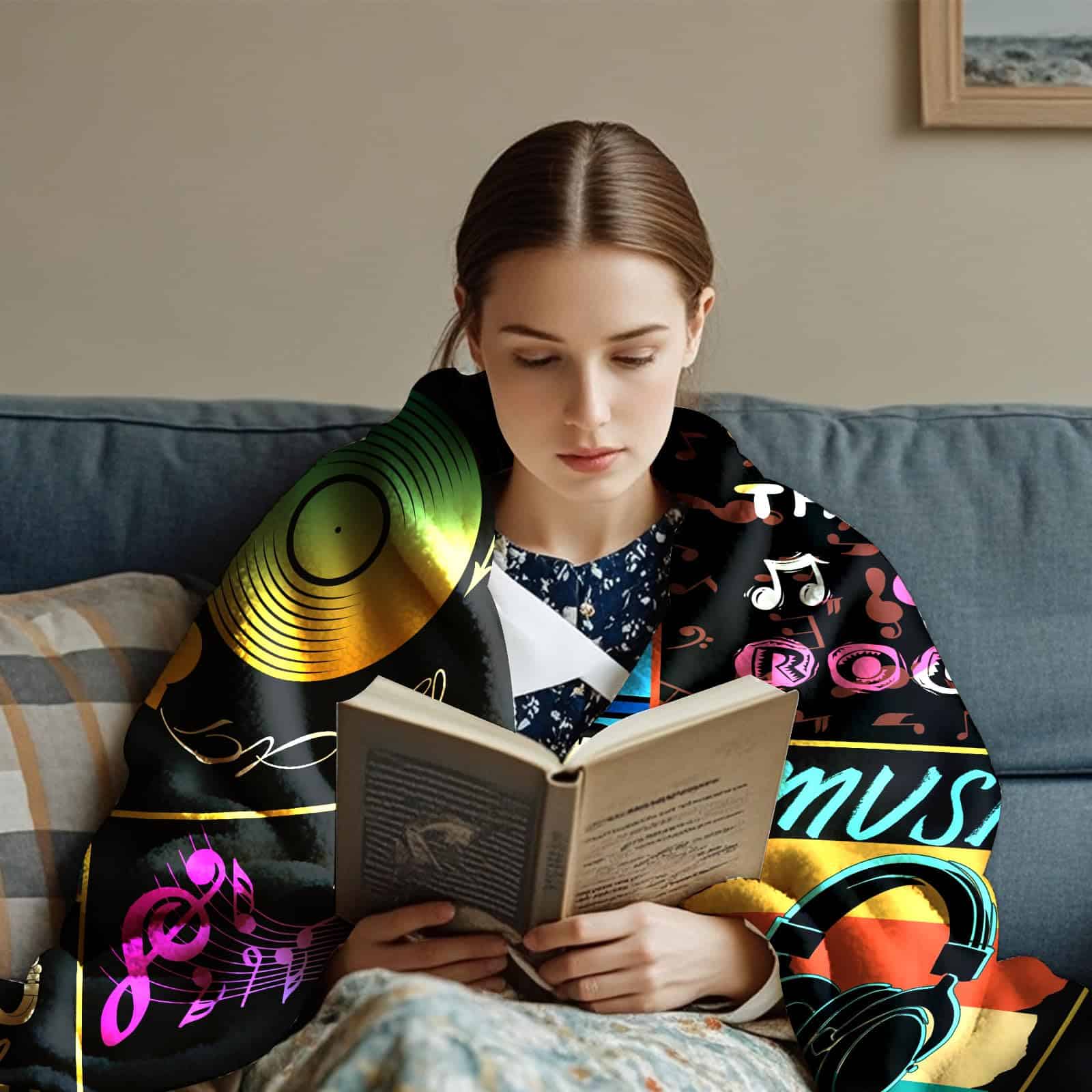 Puedes usar esta cobija esponjosa al leer, ver películas en casa. Además, se puede usar como cobija para exteriores cuando se acampa porque es ligera y portátil. Ideal para aviones, campamentos, sofás, camas, exteriores, hogares, patios, oficinas, mochileros y coches. Esta cobija de amor es un regalo perfecto para los amantes de la música.