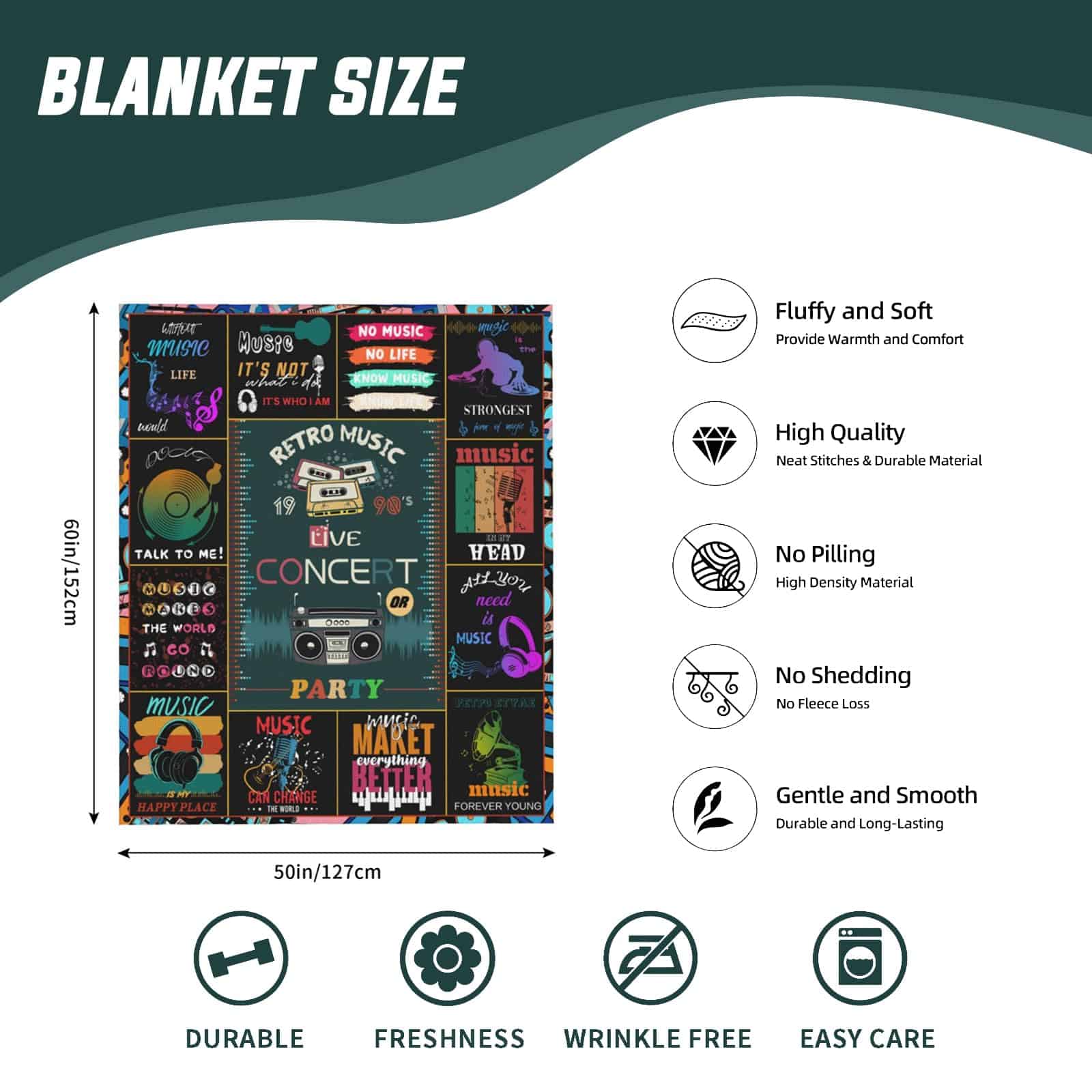 Una cobija con temática musical es un excelente regalo conmovedor para los entusiastas de la música, miembros de equipos musicales y amigos entrenadores de música, así como un póster de música de alta calidad para la decoración del dormitorio y estudio de música. Puedes enviarlo en días festivos importantes como cumpleaños, Día de San Valentín, Navidad, Acción de Gracias, etc., para hacer que se sientan amor especial.
