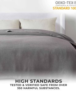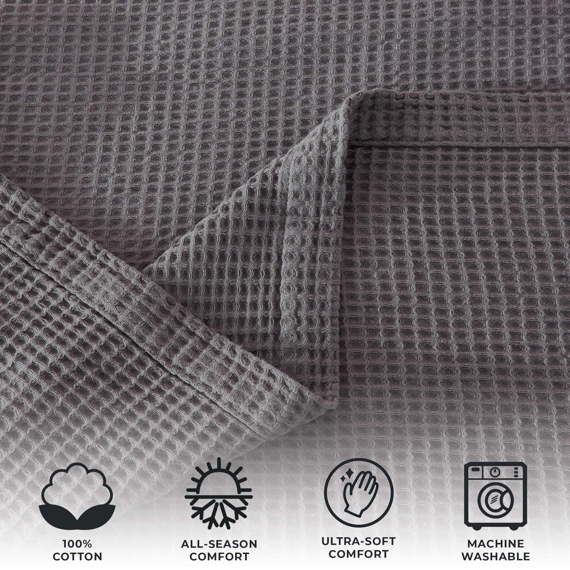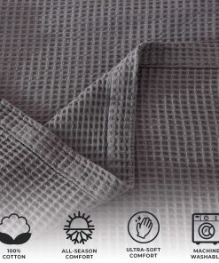 1. Textura de Gofre: Diseñada para brindar comodidad, esta cobija de cama es perfecta para tu habitación con la textura de gofre tejida y una amplia gama de colores. Esta cobija de algodón te proporcionará comodidad durante todas las estaciones. El tejido de gofre es un interés visual moderno y de moda para agregar a tu decoración versátil. 2. Cobertor de Algodón Ligero y Transpirable: Tejido con algodón de calidad al 100%, esta cobija prelavada presenta un tejido de gofre suelto diseñado para una transpirabilidad óptima mientras duermes. Ofreciendo una sensación ligera y permitiendo la regulación de la temperatura, esta cobija es ideal para la decoración de verano. 3. Cobija Versátil: Esta cobija de algodón tiene muchos más usos que una pieza de capas en tu juego de ropa de cama. Úsala como tu cobija de playa, cobija de picnic, o simplemente una cobija para acostarte en el pasto, esta es la cobija ligera ideal para el verano. 4. Fácil de Lavar: Estas cobijas de algodón son fácilmente lavables a máquina en ciclo delicado y secar en secadora a temperatura baja. Debido a la naturaleza de la textura de gofre, estas cobijas están hechas intencionalmente más grandes para compensar el encogimiento después del primer lavado. Puedes estar seguro/a de que estas cobijas ajustarán las medidas correctas después de lavarlas adecuadamente. 5. Enfoque en el Cliente: La satisfacción del cliente es de suma importancia para nosotros. Estamos seguros de que te encantarán nuestras versátiles cobijas, pero si no estás 100% satisfecho/a, nuestro equipo de servicio al cliente trabajará contigo para solucionarlo. ¡Elige entre nuestra selección de sábanas de invierno, cobertores esponjosos, o incluso toallas duraderas.
