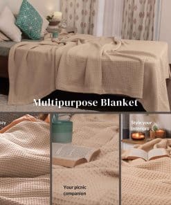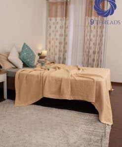 Cobija de Algodón Beige 100% de 9Threads Tejido de Gofre