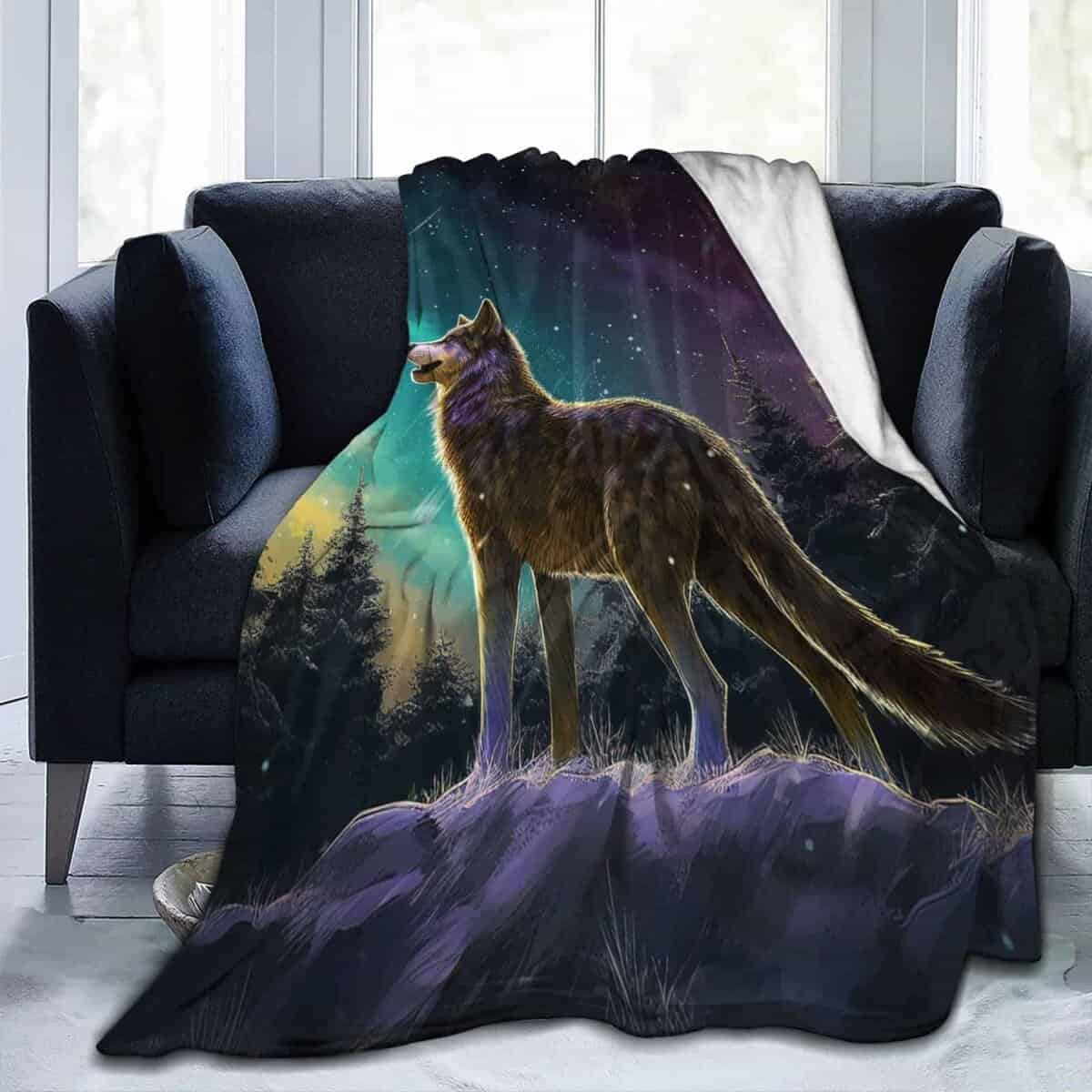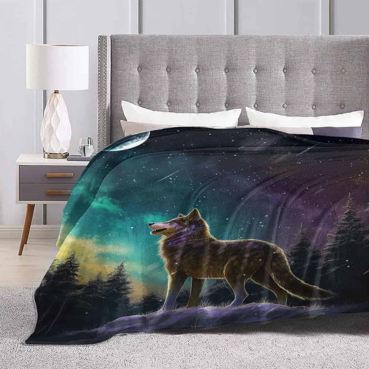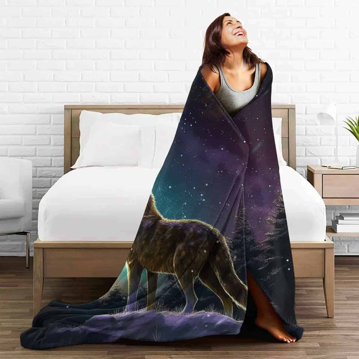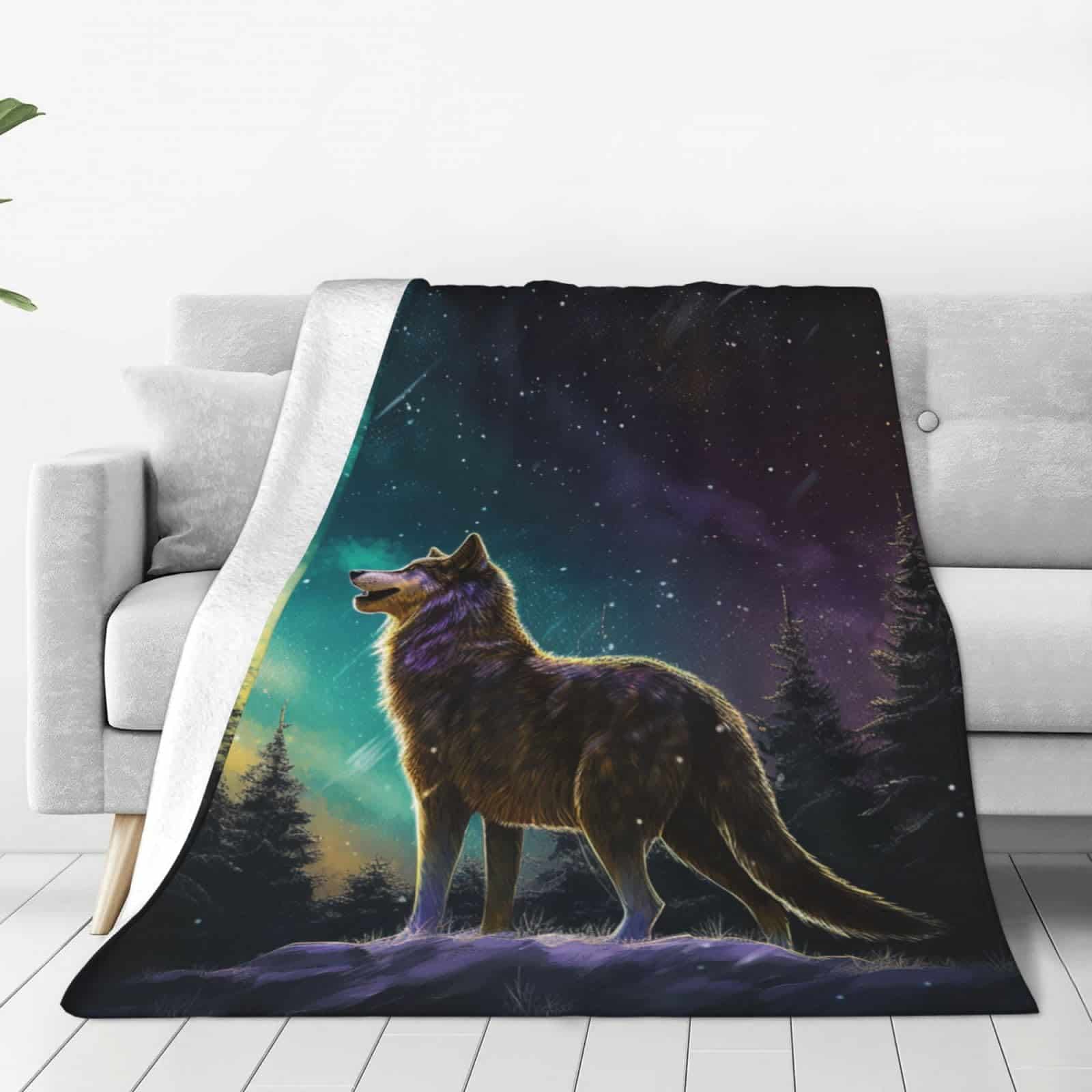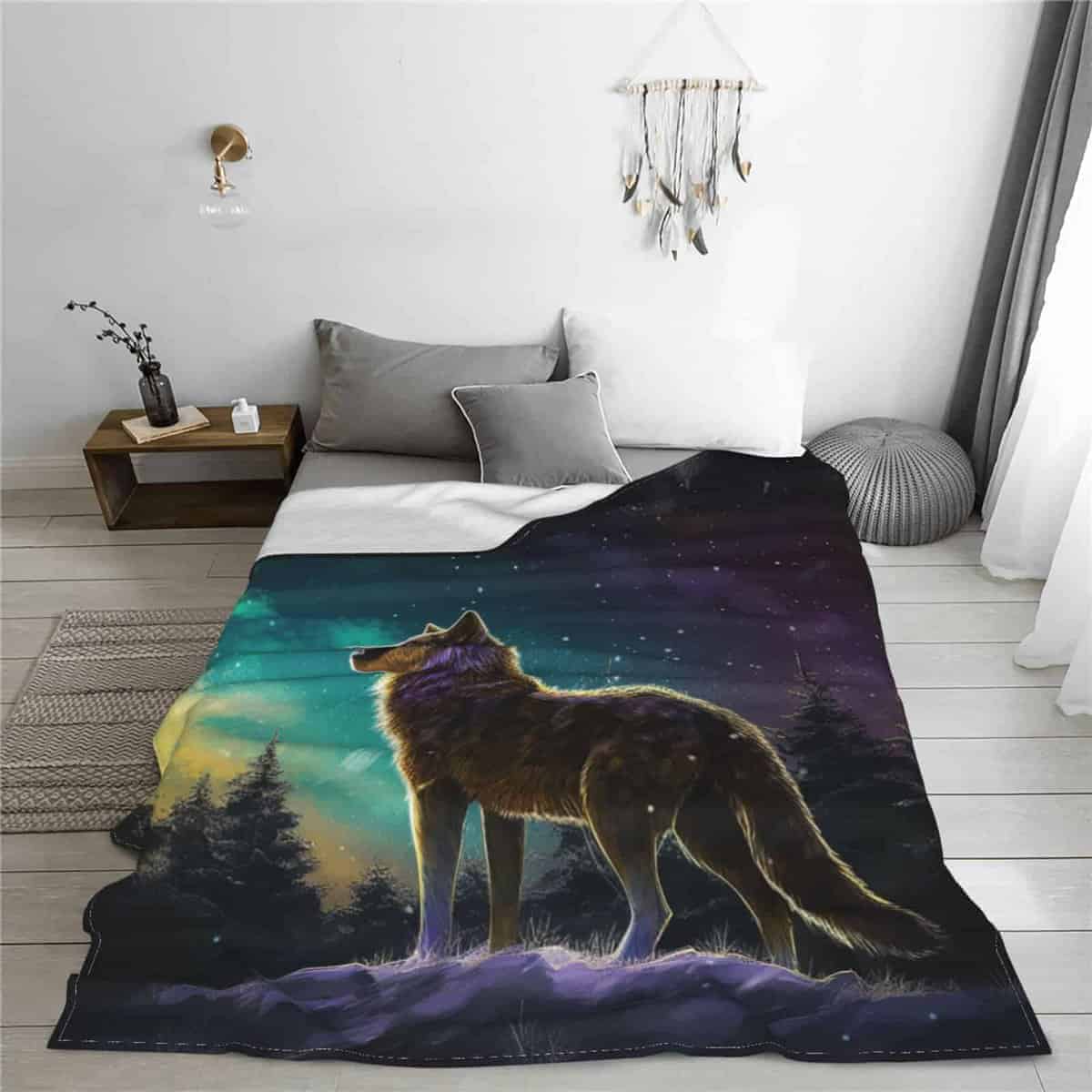 Cobija de Lobo Decorativa Forestal en el Cielo Estrellado