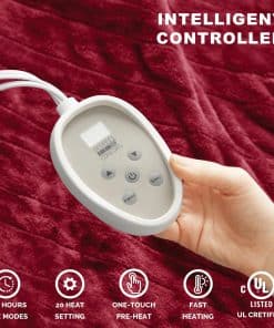 1. Seguridad Primero – Mantas eléctricas certificadas por UL específicamente diseñadas para liberar las emisiones de EMF más bajas posibles mientras se calientan hasta un confort cálido con tranquilidad garantizada. 2. Ajuste de Calor Ajustable Encuentra tu calidez perfecta con 20 niveles de calefacción diferentes utilizando nuestro control de pantalla LCD. Controlador doble disponible solo para tamaños de reina, rey y rey de California. 3. Diseñado para la Comodidad – El cable de alimentación de 12.5 pies proporciona suficiente longitud para conectarse a los enchufes sin molestar por la noche y el cable del controlador de 6 pies ubicado convenientemente se puede alcanzar fácilmente y guardar también. 4. Cuidado Fácil – Desconecta el controlador y los cables de alimentación y coloca la manta en la lavadora. Usa solo agua fría o tibia y ponla en un ciclo de agitación lenta. Luego muévela a la secadora a calor bajo o déjala secar al aire. No uses lejía ni otros líquidos excepto detergente de limpieza multiusos. Probado para mantenerse suave y mullida después de varios lavados. 5. Garantía de 5 Años – Honramos nuestra garantía de 5 años en todas nuestras mantas eléctricas para que cada compra esté protegida. Si en algún momento experimentas un problema, por favor no dudes en contactarnos. Tamaño: INDIVIDUAL 62Wx84L»