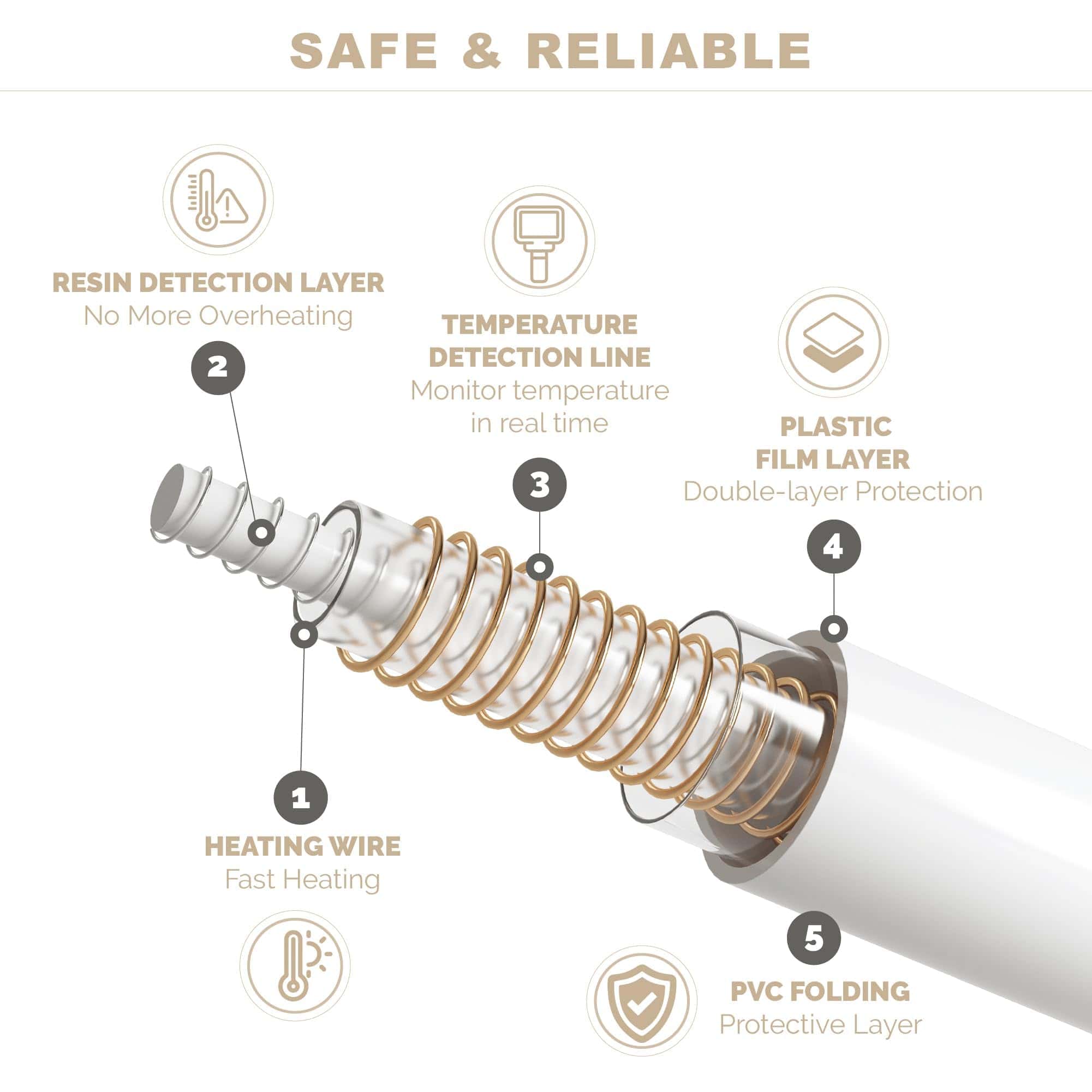 (De la descripción original) Cobertores eléctricos certificados por UL específicamente diseñados para liberar las emisiones de EMF más bajas posibles mientras proporcionan una comodidad cálida con tranquilidad garantizada. Encuentra tu calor perfecto con 20 niveles de calentamiento diferentes utilizando nuestro control de pantalla LCD. Controlador dual disponible solo para tamaños queen, king y California king. El cable de alimentación de 12.5 pies proporciona suficiente longitud para conectarse a los enchufes sin molestias por la noche y el cable del controlador de 6 pies convenientemente colocado puede alcanzarse fácilmente y guardarse también. Desconecta los cables del controlador y de alimentación y coloca la cobija en la lavadora. Usa agua fría o tibia solamente y ponla en un ciclo de agitación lento. Luego colócala en la secadora a baja temperatura o déjala secar al aire. No uses lejía u otros líquidos excepto detergente para limpieza multiusos. Probado para mantenerse suave y mullido después de múltiples lavados. Honramos nuestra garantía de 5 años en todos nuestros cobertores térmicos, por lo que cada compra está protegida. Si en algún momento experimentas un problema, no dudes en contactarnos.
