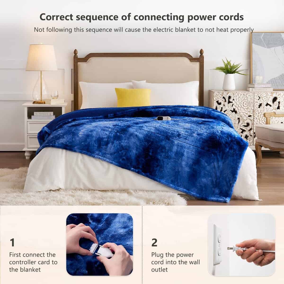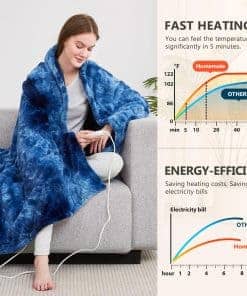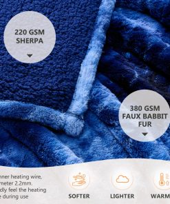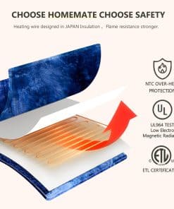 Cobija eléctrica Homemate Queen – 84×90 Cobertor calefactor queen 5 niveles de calor apagado automático 10 niveles de calor protección contra sobrecalentamiento lujo piel falsa sherpa calentador eléctrico certificación etl. Premium material: 380gsm faux fur + 220gsm sherpa. The fabric is very soft, thicker than normal blankets, and warmer than normal blankets even without electricity. The fabric is durable and does not shed. The diameter of the heating wire is 2.2 mm, and the existence of the heating wire is hardly felt during use, which is more comfortable. Safety: Homemate heated blankets have passed the american safety ul964 test. Have etl certification.lower electro magnetic radiation. The heating wire is designed and produced by japanese company, more advanced technology, stronger insulation and flame resistance.moreover,the heating blanket use ntc overheating protection technology to ensure that it will not overheat and cause burning. And our heating wire is longer, so the heating area is larger and the heat is more evenly distributed. Eenergy saving: homemate heated throw blanket use the intelligent temperature adjustment technology. When the temperature rises, the portable heated blanket will automatically adjust the temperature according to the surrounding environment, which can always provide users with a comfortable feeling and is conducive to energy saving. Compared with air conditioner, using homemate heated blanket is more energy efficient, and you can save more heating costs in winter. Eesy to use: homemate heated blanket have 10 heat levels, 1h 2h 4h 6h 8h auto shut off. Temperature range is 30-50 c. There is only one button on the controller to control the temperature, very convenient to use, even the elderly, the sick, and the disabled can use it easily. Power cord is 5.10 m, this long cord makes the use of the warm blanket more flexible, can be used on the bed, on the sofa, can be used in the study and office, very convenient.