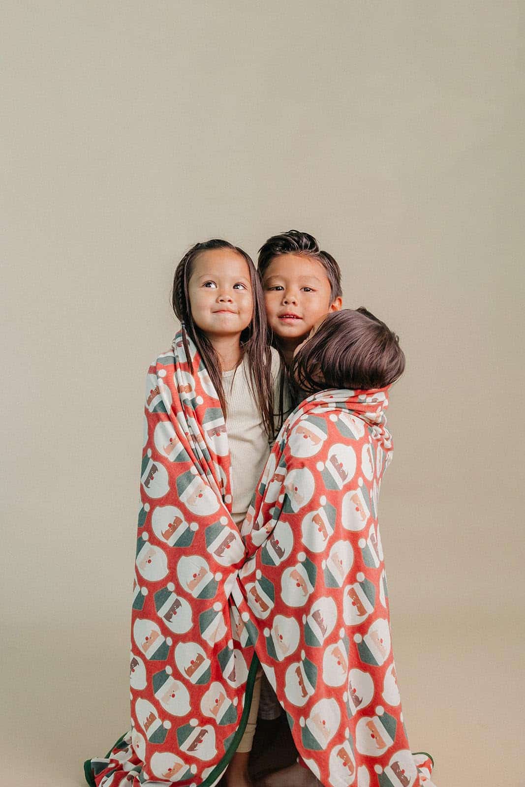 Una versión más grande de nuestra Manta de Tres Capas original. Tomamos nuestra popular Manta de Tres Capas y la ampliamos a 60 x 72 pulgadas, convirtiéndola en un tamaño perfecto para niños más grandes y adultos. Hecha de tela de punto premium, nuestra cobija grande presenta un estampado de moda en un lado y una sensación clásica en el otro, para suavidad y elasticidad reversibles que seguramente mantendrán a toda la familia acogedora.