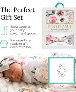 Cobija Exclusiva para Bebé Posh Peanut Impresionantes colores de tonos neutros, morados, rosas, azules y amarillos. La envoltura para bebé fue diseñada con tonos mágicos de colores para un cacahuete sofisticado. Envuelva a su cacahuete en bambú exuberante. Transpirable, ligera, elástica y extra grande. La trama natural de la viscosa de bambú facilita el envoltorio, lo suficientemente elástica para un envoltorio agradablemente ajustado con suficiente espacio para moverse. Nuestras envolturas extra grandes tienen la cantidad perfecta de elasticidad para envolver en la etapa de recién nacido y son versátiles a medida que su cacahuete crece. Las envolturas de bambú de Posh Peanut son ideales como cobertores para cochecitos, cubiertas para lactancia, mantas de recepción y mucho más. Características: 44 x 44 pulgadas // 111cm x 111cm El conjunto incluye 1 envoltura y una diadema a juego Empaquetado individualmente en una elegante caja de regalo de Posh Pre-lavado 95% viscosa de bambú, 5% spandex Diseño original Ligero y transpirable Lavar en ciclo delicado // secar en secadora a baja temperatura o secar en línea