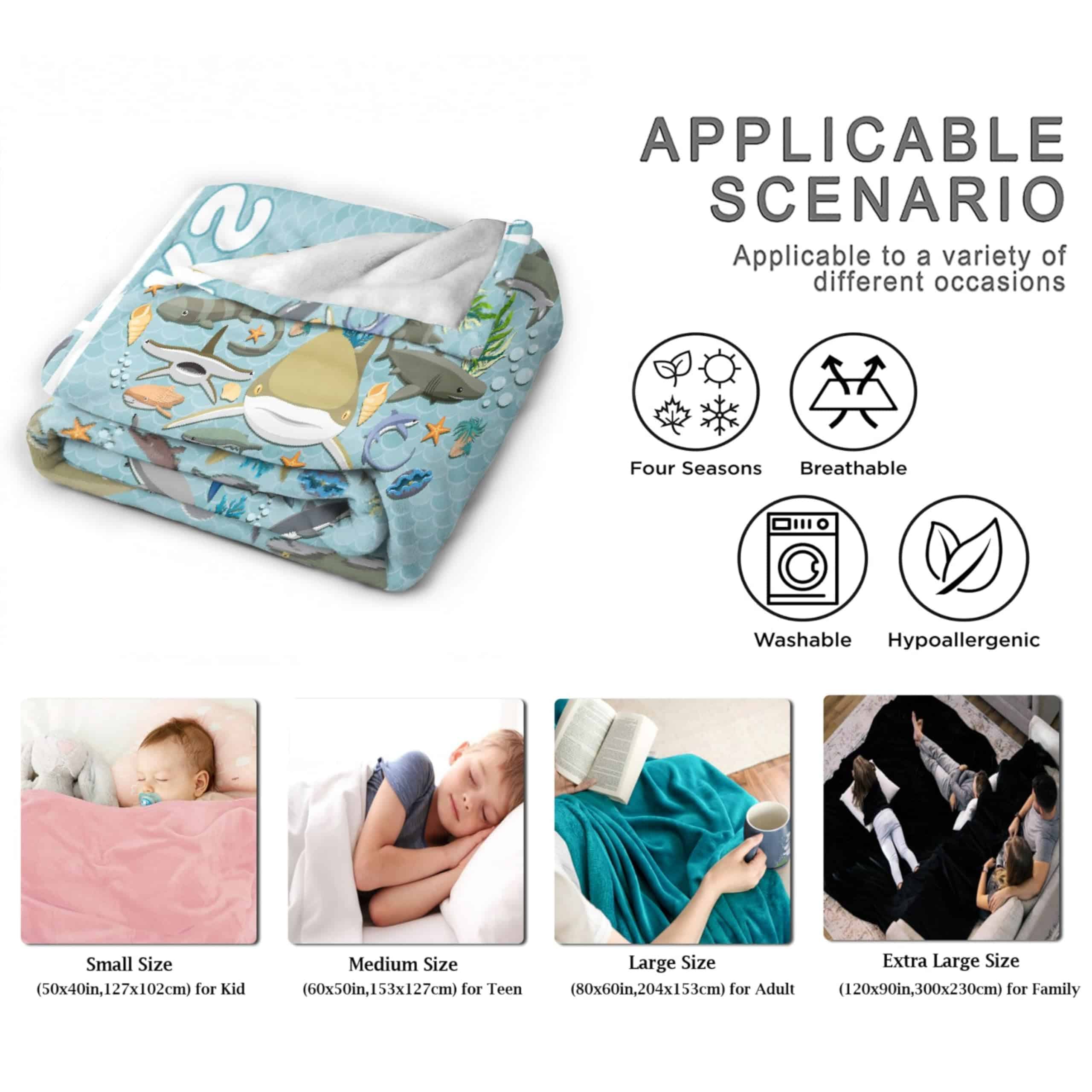Cobija para Niños Niñas Amantes de los Tiburones – Tipos de Tiburones Suave y Cálido de Felpa Animal Lindo Educativo para Decorar Sofá Guardería Coche – 50″ X 40″. Material & Diseño Estas cobijas de felpa son de fibra de poliéster de alta calidad. Adopta técnicas de corte precisas y costura exquisita. Viene en colores llamativos para el cambio de estación, incluyendo colores frescos y cálidos, nuestra cobija es la adición perfecta para tu habitación. Tamaño y Objetos Aplicables 30 40″ XS, adecuado para niños pequeños, mascotas pequeñas o para cubrir las piernas; 40 50″ S, adecuado para niñas y niños pequeños; 50 60″ M, adecuado para adolescentes y estudiantes; 60 80″ L, adecuado para adultos y niños gemelos; 90 120″ XL, adecuado para parejas y familias. Escenarios y Funciones La cobija es tan suave y cálida que te hará sentir cómodo cuando estés recostado en el sofá, sofá o cama, te cubrirá con el toque final perfecto. También es ideal para las mascotas peludas. La cobija es ligera y perfecta para acampar al aire libre, picnics y mochileros. Regalos y Obsequios Debido al material suave y diseño elegante, definitivamente es una gran elección de regalo para familiares y amigos en cumpleaños, inauguración de la casa, aniversario, fiesta, Día de San Valentín, Acción de Gracias, Navidad, etc. Este es un regalo cálido, la persona que lo reciba estará feliz. Fácil de Limpiar: Lavable a máquina o a mano. Lavar a máquina en ciclo suave con agua fría, secar a temperatura muy baja. La limpieza de las cobijas de adulto es muy simple y conveniente. No te tomará mucho tiempo. Tienes tiempo para detenerte y hacer lo que te gusta. Tu satisfacción es nuestra mayor búsqueda.