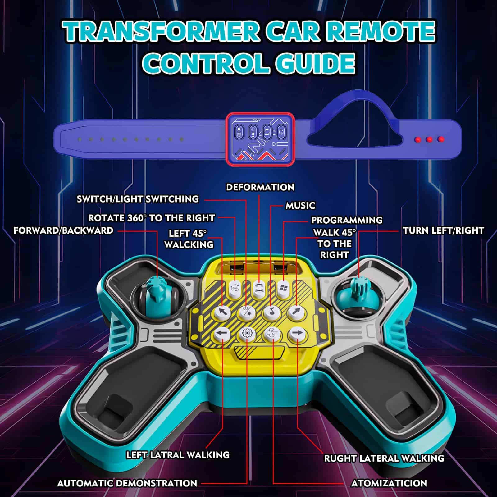 2. Detección de Gestos y Control Remoto: Este coche RC de juguete para niños de 8-10 años adopta tecnología de transmisión de 2.4GHz, equipado con dos modos de control: gestos y control remoto. Ponte el reloj sensor y cambia el gesto, el coche transformable cambiará su forma en consecuencia, sintiendo el mágico control por gestos. También puedes usar el control remoto para un control preciso, para satisfacer diferentes necesidades de juego.