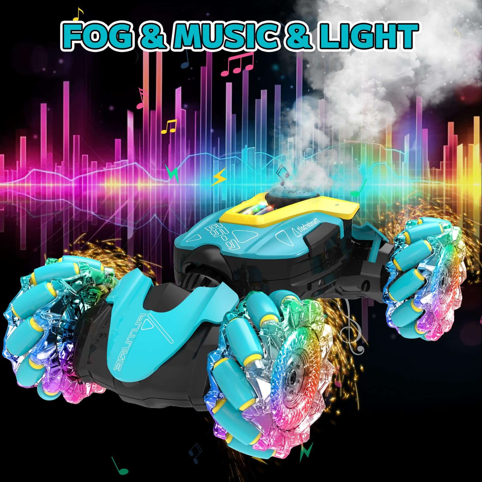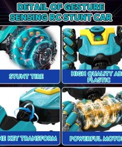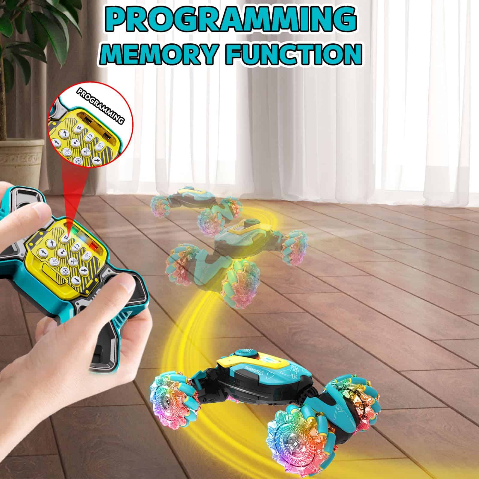 1. Coches acrobáticos RC todo terreno: El coche RC de detección de gestos está equipado con luces llamativas y música dinámica y rocío, que pueden realizar rotación de 360�, caminar de lado, deriva en todas direcciones, conducción de doble lado y otras funciones. El diseño de articulación biónica facilita el cambio de modo en carretera a modo todoterreno, brindándote una emocionante experiencia de carreras. Los impresionantes coches acrobáticos RC son excelentes juguetes para niños de 6-8 años.