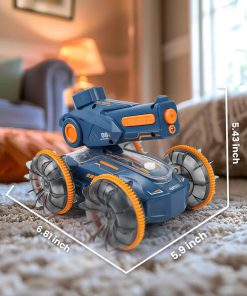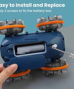 Juega de forma divertida en el agua: El mando a distancia portátil y el controlador de gestos manual son impermeables, lo que los hace perfectos para juguetes de piscina con control remoto. Puedes nadar y controlar tu tanque, utilizando agua de la piscina para llenarlo, asegurando que siempre esté listo para disparar. Si se voltea, drena cualquier agua que entre por arriba y luego continua jugando. Velocidad ajustable: En casa, si es demasiado rápido, puedes hacer clic en el botón del control remoto para ralentizarlo. En el agua, si es demasiado lento, puedes hacer clic para hacerlo correr más rápido. Luces incorporadas que se encienden y como indicadores, parpadean cuando la batería está baja. El coche puede durar 5 minutos para recordarte que lo traigas de vuelta. Fácil de instalar y reemplazar: Solo se necesitan 2 tornillos para fijar la caja de la batería, lo que hace que sea fácil de quitar y reemplazar la batería. Viene con dos grandes baterías recargables (1200 mAh), lo que te permite jugar durante 1 hora en tierra, playas arenosas, hierba, piscinas, bañeras o lagos. Regalo perfecto para niños: Con un control remoto de 2.4 GHz, tú y tus hijos pueden disfrutar de batallas juntos, con un alcance de hasta 15 metros en agua. En verano, es el favorito de la fiesta en la piscina y también un regalo genial para cumpleaños, fiestas, Navidad o cualquier ocasión especial, para niños y niñas de 5 a 12 años de edad.