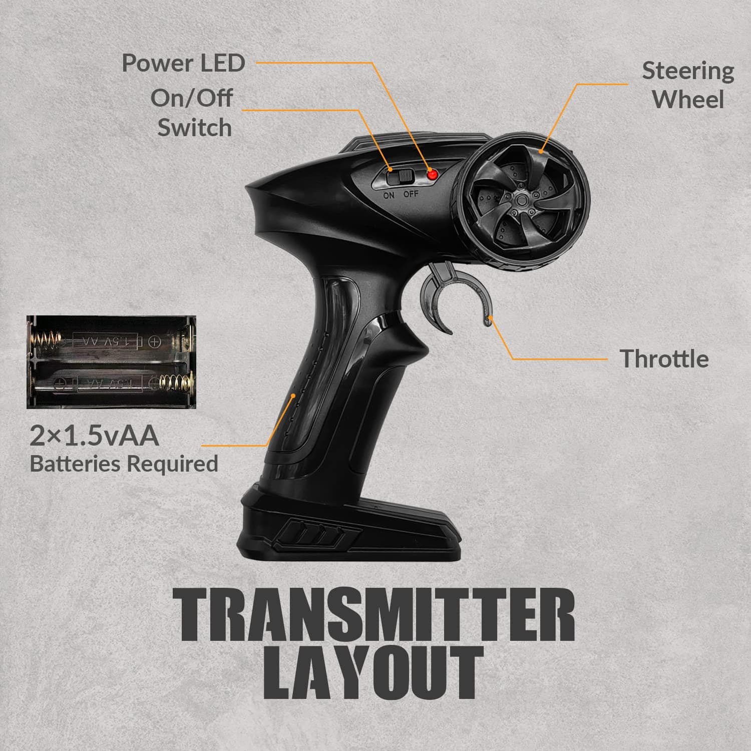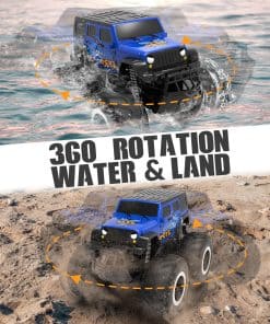 Coche de Control Remoto Anfibio para Niños Doble Cara Todo Terreno SUV Fuera de Carretera Barco de Control RemotoEl coche de control remoto anfibio no solo es un corredor en carretera, arena, hierba, también puede navegar libremente en el agua! El coche de control remoto con un diseño especial de correr y navegar de doble cara, también realiza increíbles giros de 360 grados en el agua y en tierra. Increíble monster truck todo terreno que soporta jugar en tierra, playa, barro, hierba o lago, etc.¡Características!COCHE RC CON ANTI-INTERFERENCIAS DE 2.4 GHzCon sistema de control remoto de radio 2.4G, permite que varios coches de control remoto anfibios compitan juntos al mismo tiempo, reúne a los niños para más tiempo divertido, ¡gran elección de juguetes de coche de control remoto para niños de 4 a 7 años!MATERIALES DE ALTA CALIDADHecho de materiales de primera calidad como ABS y PVC no tóxico, el supercuerpo del coche a prueba de golpes evita el daño, hace que el cuerpo sea más duradero e impermeable. Ruedas antideslizantes con excelente rendimiento a prueba de golpes, rompen fácilmente todos los terrenos y tienen vidas más largas.DOBLE BATERÍA PARA DOBLE DIVERSIÓNEste coche de control remoto anfibio viene con dos baterías recargables, cada una con un tiempo de juego de hasta 20 minutos, ¡tiene una larga duración de la batería y disfruta de más placer de carreras con los niños! ¡Geniales juguetes de coche al aire libre para niños de 4 a 8 años!Especificación:Tamaño del Coche: 10.03 x 6.88 x 6.49 pulgadasColor: AzulVelocidad: 7.5MPHModo de Conducción: 4WDDistancia de Control: 131 pies / 40 mFrecuencia de Control Remoto: 2.4GHzLista de Paquetes Coche de control remoto anfibio 1 Control Remoto 1 Batería lipo recargable 2 Baterías AA para el transmisor 2 Cargador USB 1 Destornillador 1 Manual del Usuario 1 ¡Un regalo maravilloso para el cumpleaños de los niños, Navidad, Día del Niño, Día de Acción de Gracias, Actividades en el Campamento de Verano!