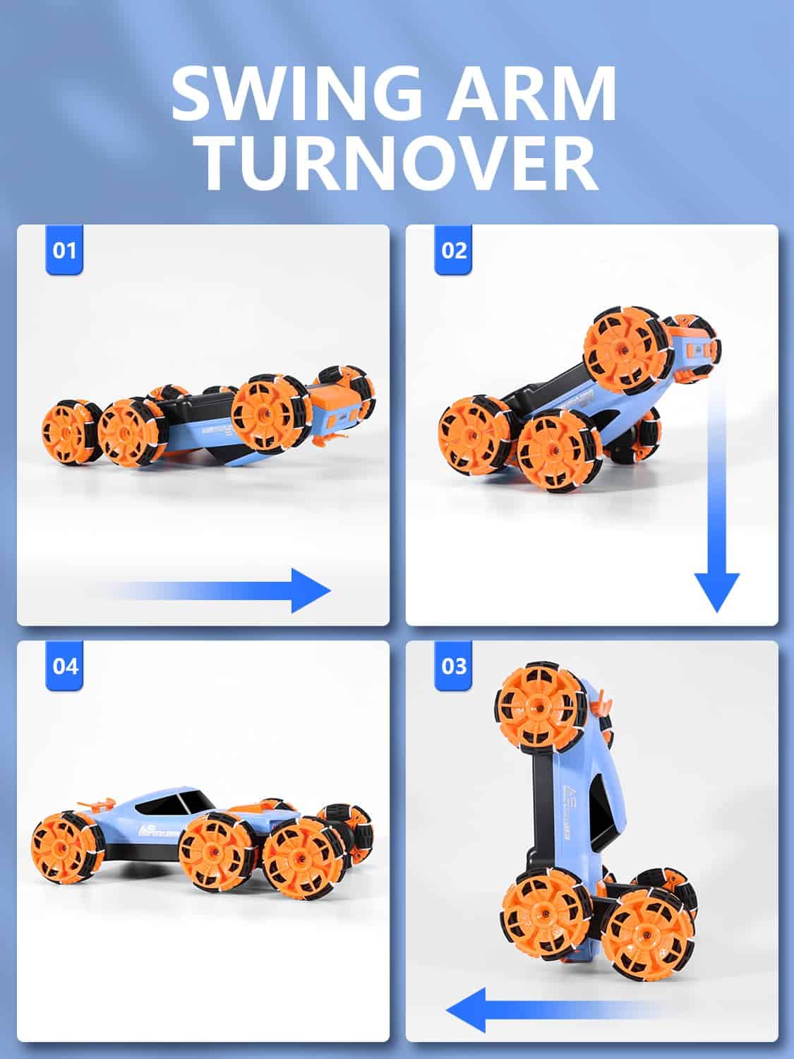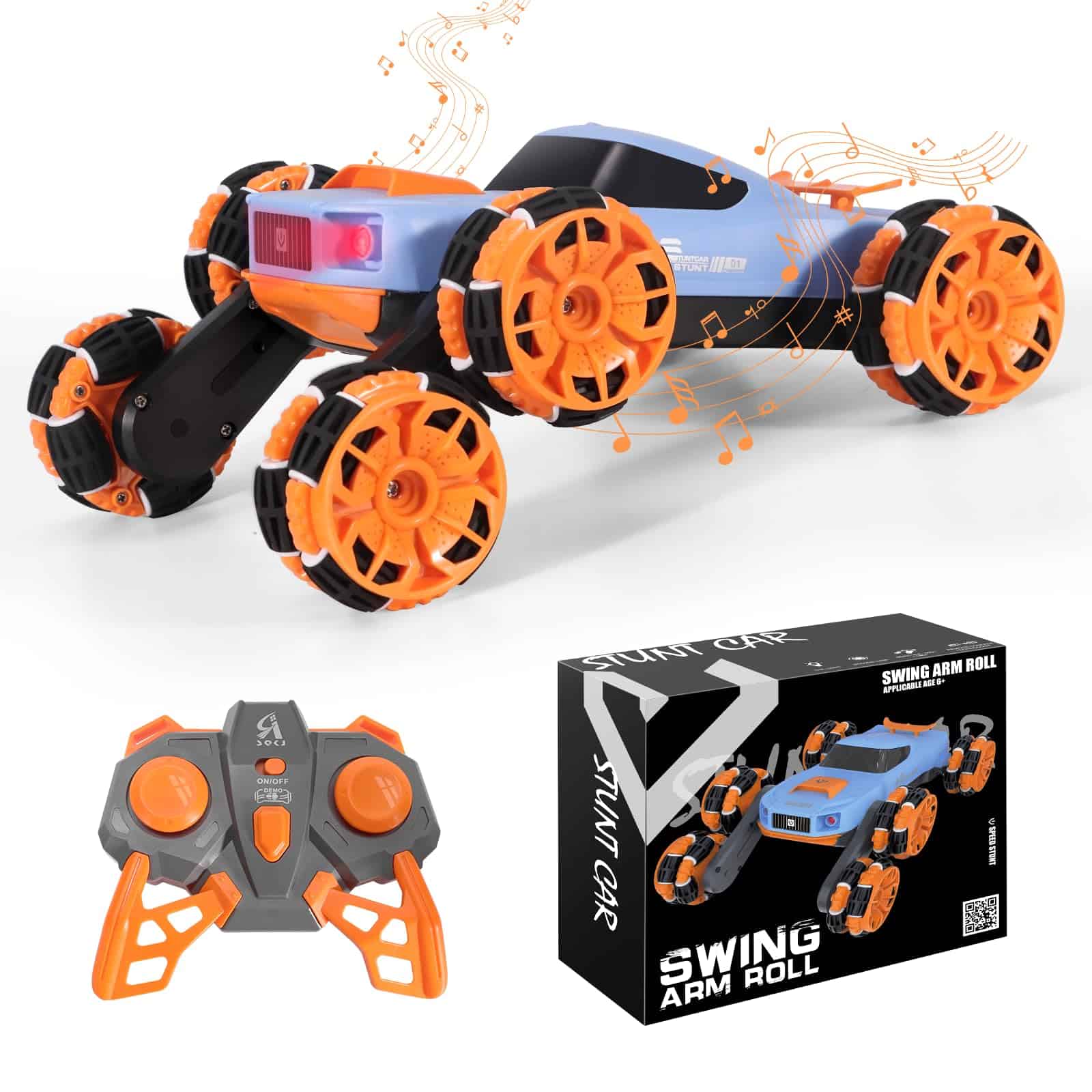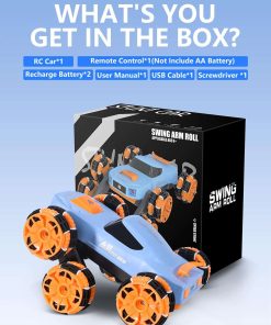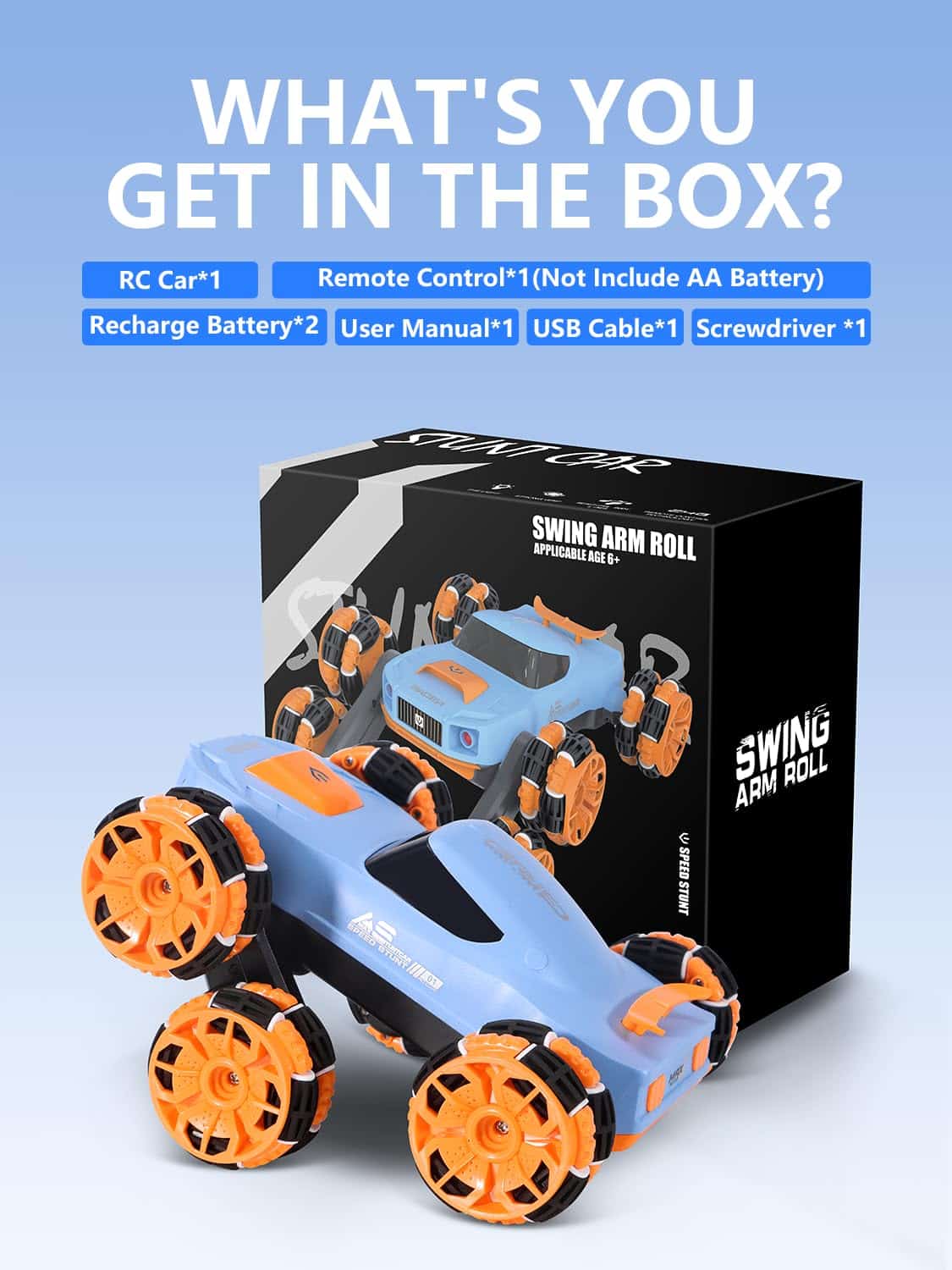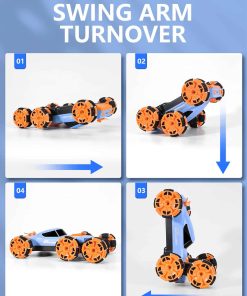 1. Coche de acrobacias 6WD genial: El diseño único puede realizar carrera, hacia adelante, hacia atrás, giro de 360 grados, e incluso balancear el brazo hacia adelante o hacia atrás. ¡Corre con amigos, derrapa, deja que tus hijos experimenten locas acrobacias todoterreno, y les brinde diversión ilimitada!