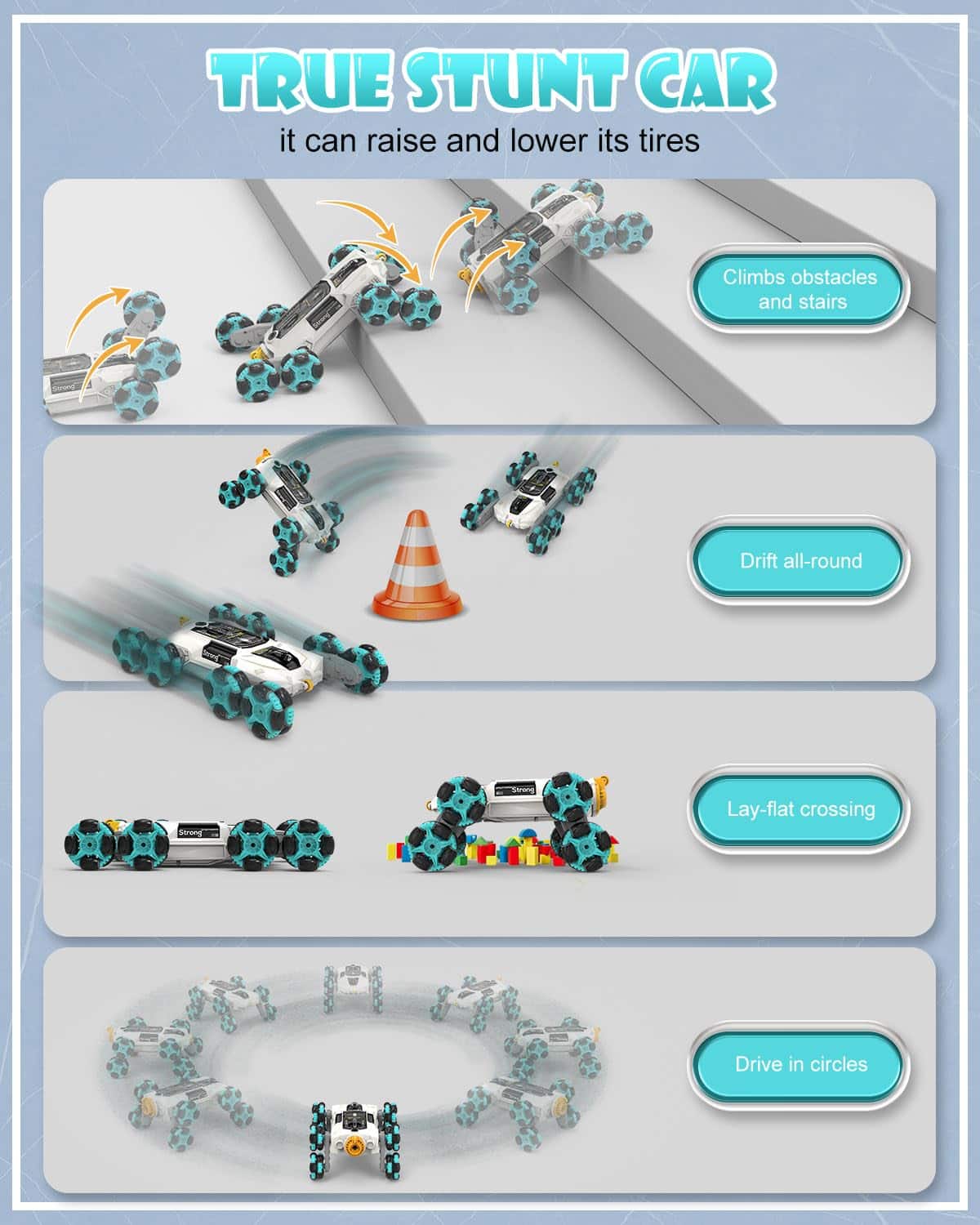 4. Es lo que debes obtener tanto para niños como para niñas y tener éxito en la vida con este coche de acrobacias único que ha sido hecho para ser adquirido por ti solo, a tu lado mientras juegas con la rueda de control remoto de tus padres.
