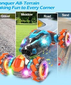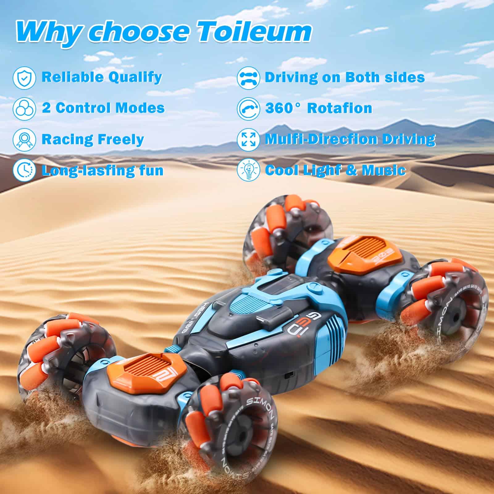 El cuerpo del coche de acrobacias de Toileum está diseñado con articulaciones biónicas duraderas, equipado con 4 poderosos motores y neumáticos resistentes, adecuados para aventuras en interiores y exteriores, como escaleras, alfombras, playas y césped. Cambiar a los modos en carretera y todoterreno garantiza velocidades más altas y mejor agilidad con el modo de doble cara. El coche de control remoto de Toileum cuenta con luces, música, drift, sensor de movimiento, etc. Es un regalo ideal para niños y niños, así como para adultos. A los interesados en juegos de carreras les encantará. ¡Comienza la carrera junto con tus amigos y familiares! Toileum se compromete a proporcionar servicios de calidad a nuestros compradores. Si tienes alguna pregunta sobre los productos, contáctanos por correo electrónico. ¡Responderemos a tu correo electrónico en un plazo de 24 horas!