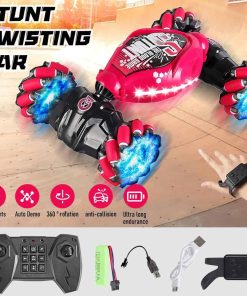 Coche de Acrobacias Controlado por Gestos KEPEAK, Coches RC de Alta Velocidad 4WD con Rotación de 360� 2.4GHz, Tiempo de Juego de más de 60 Minutos, Mejores Regalos para Niños Niñas de 6 a 12 Años (Rojo). Equipado con un potente sistema de tracción 4WD, el coche teledirigido puede conducir en todo tipo de terrenos, como hierba, tierra y arena. Los amortiguadores de doble cara y los neumáticos antideslizantes resistentes hacen que el coche sea más duradero y a prueba de golpes. KEPEAK coche teledirigido con soporte de control de gestos e infrarrojo. El coche cambiará de dirección o velocidad moviéndose o haciendo gestos frente al coche. También puede hacer volteretas frontales de 360�, volcar y otras acrobacias geniales. Puedes disfrutar jugando con tus amigos. El coche está equipado con una batería recargable de alta capacidad de 500MA 2, que lleva 2-3H en cargar completamente una sola batería. Se puede utilizar de forma continua durante aproximadamente 60 minutos cuando está completamente cargado. Este coche teledirigido tiene una frecuencia de 2.4Ghz, que puede controlar el coche el mando a distancia está a unos 50 metros, el reloj a unos 40 metros. La distancia de control es más larga y la señal es más estable. El coche tiene una fuerte capacidad antiinterferencias, que puede controlar fácilmente el coche sin interferencias de otros juguetes. El coche teledirigido es adecuado para diversas ocasiones, como cumpleaños, Día del Niño, Navidad, etc. Es un regalo ideal para niños y niñas de 6 a 12 años. Si tienes alguna pregunta sobre el producto, no dudes en contactarnos