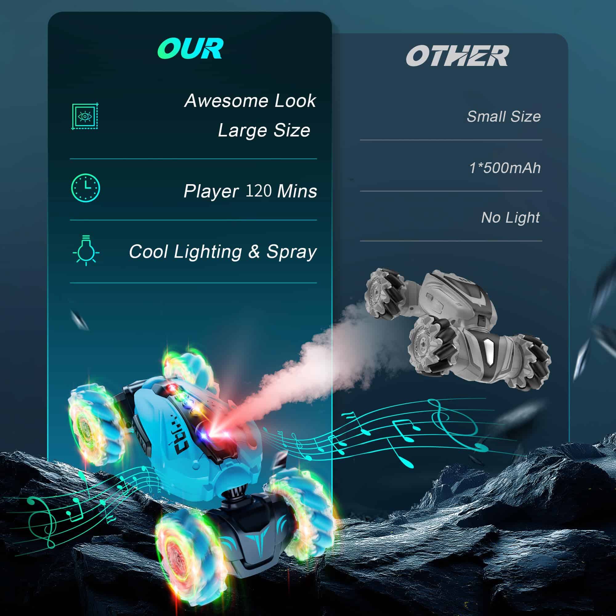 CoziBB Coche de control remoto por Gestos con Spray y Luces y Música
