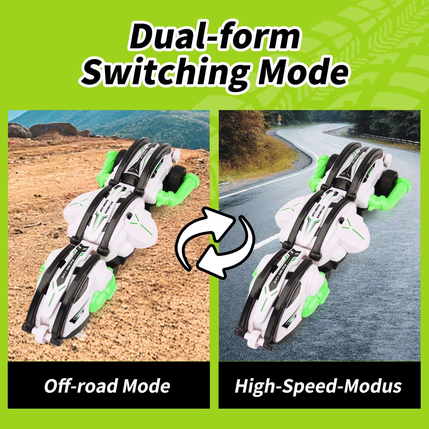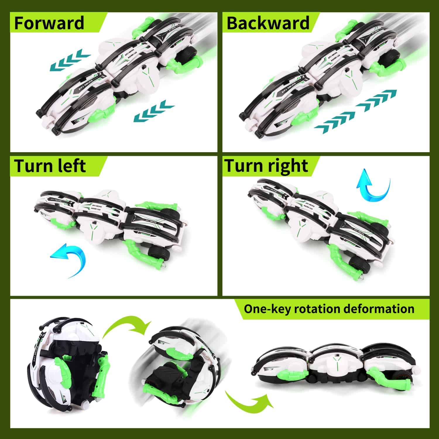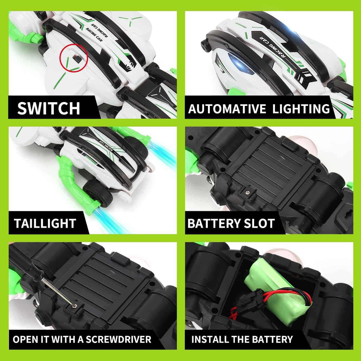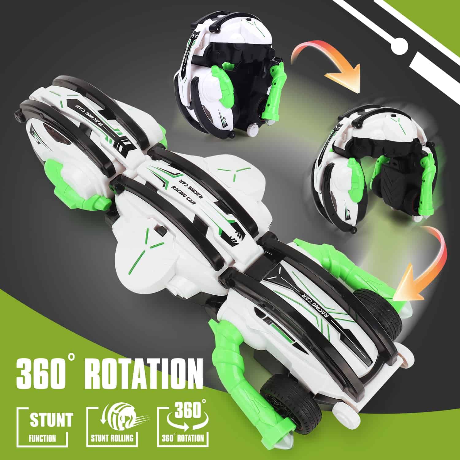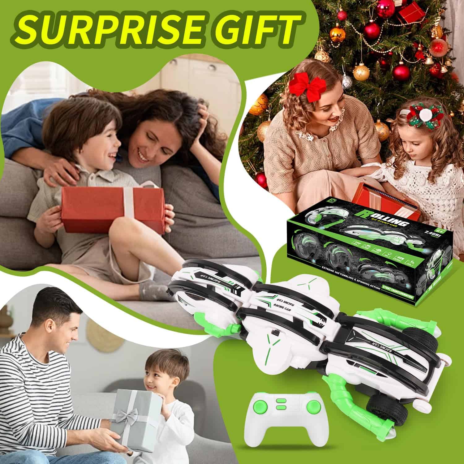 Coche de control remoto novedoso con forma peculiar, velocidad de 15 kilómetros por hora y capacidades de transformación y volteretas para entretener a los niños. Equipado con 3 baterías para horas de diversión sin interrupciones. Es un coche de alta velocidad 2.4Ghz para todo tipo de terrenos. Hecho de material ABS duradero y no tóxico, lo que lo hace seguro para los niños. La resistente carrocería a prueba de golpes es lo suficientemente resistente para resistir cualquier tipo de uso por parte de los niños. Empaquetado en una caja de alta calidad para regalo, lo que lo convierte en un regalo perfecto para niños de 6 a 12 años en cumpleaños, Navidad u otras festividades. Si tienes algún problema, contáctanos directamente y te ayudaremos a resolverlo perfectamente.