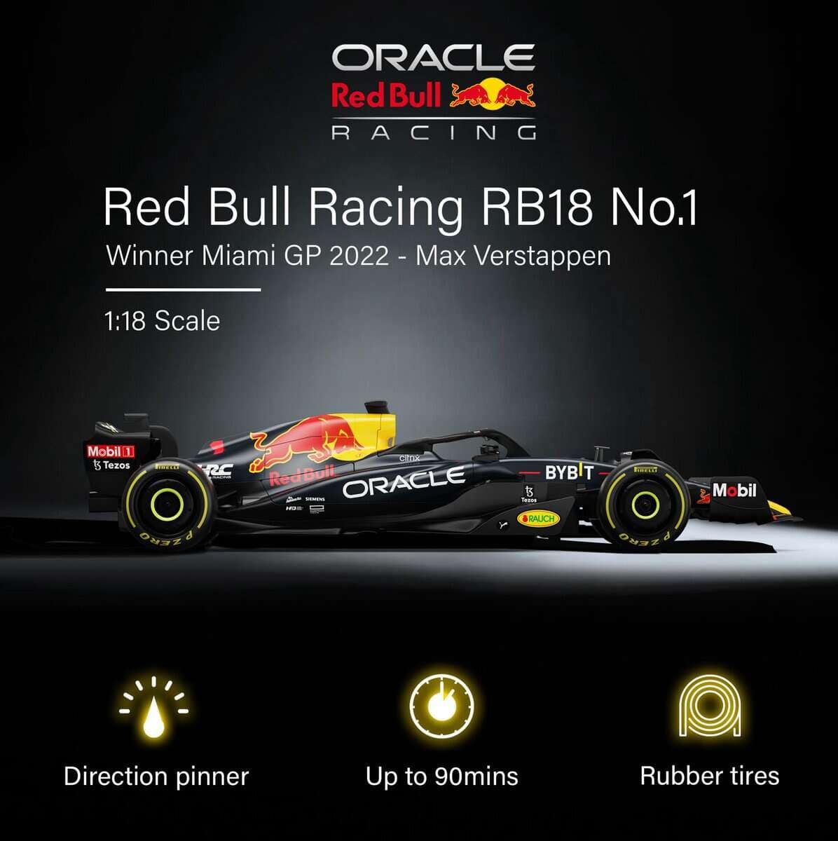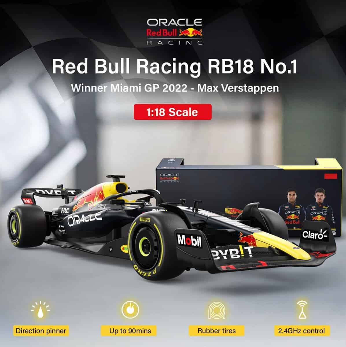 1. Autorización oficial: Totalmente autorizado por el equipo de F1 de RedBull, una réplica muy bien diseñada del coche real; El vehículo mide en escala 1:18.