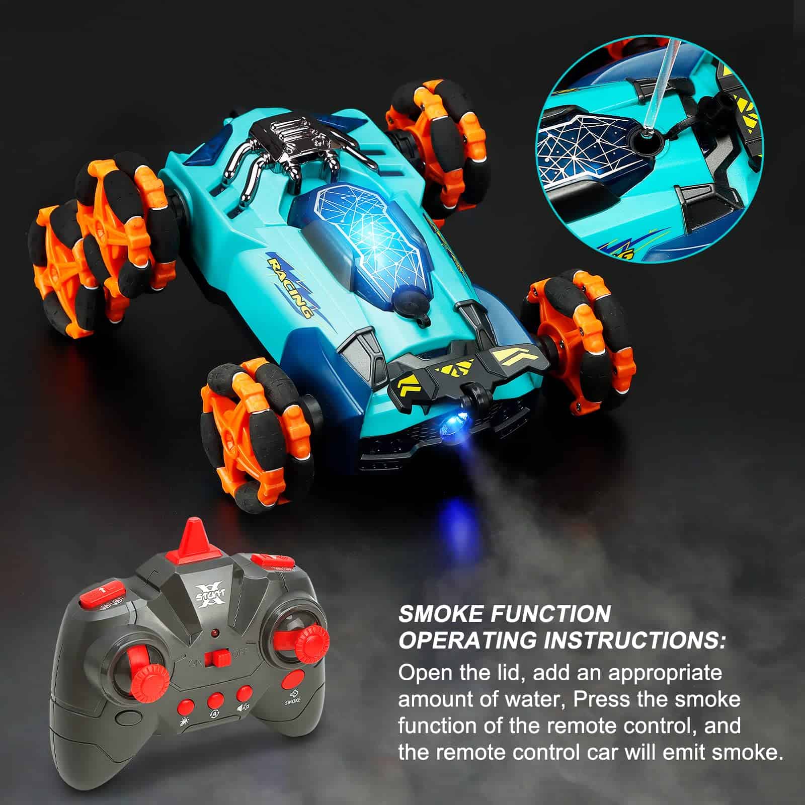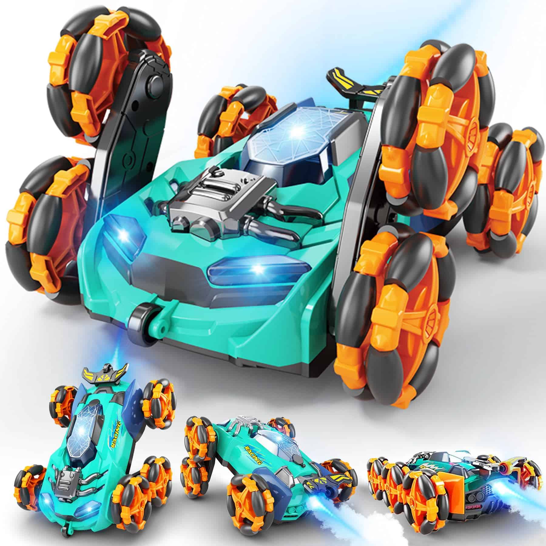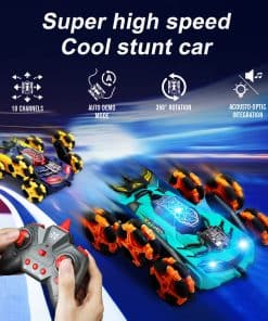 1. MULTIFUNCIONAL: Los coches rc pueden emitir humo, ir en múltiples direcciones, rotación de alta velocidad de 360 con varios tipos de música o luces, voltear hacia arriba o hacia abajo y demostración automática. Docenas de tipos adaptados para escalar escaleras, cruzar, etc.