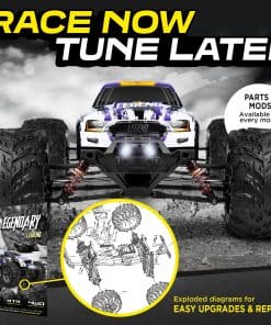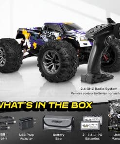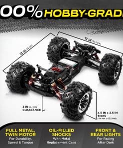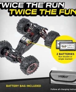 Equipado con motor cepillado de alta velocidad, el coche de control remoto LAEGENDARY para chicos y adultos funcionará hasta por 30 minutos a la vez. NO DETENGAS LA DIVERSIÓN. Con control de 2 velocidades y tracción total, nuestros camiones RC todoterreno impermeables vienen completamente ensamblados, listos para funcionar directamente fuera de la caja. Alcanza velocidades de hasta 38 km/h (24 mph), lo que hace que el coche corra más rápido que otros en la pista de carreras.
